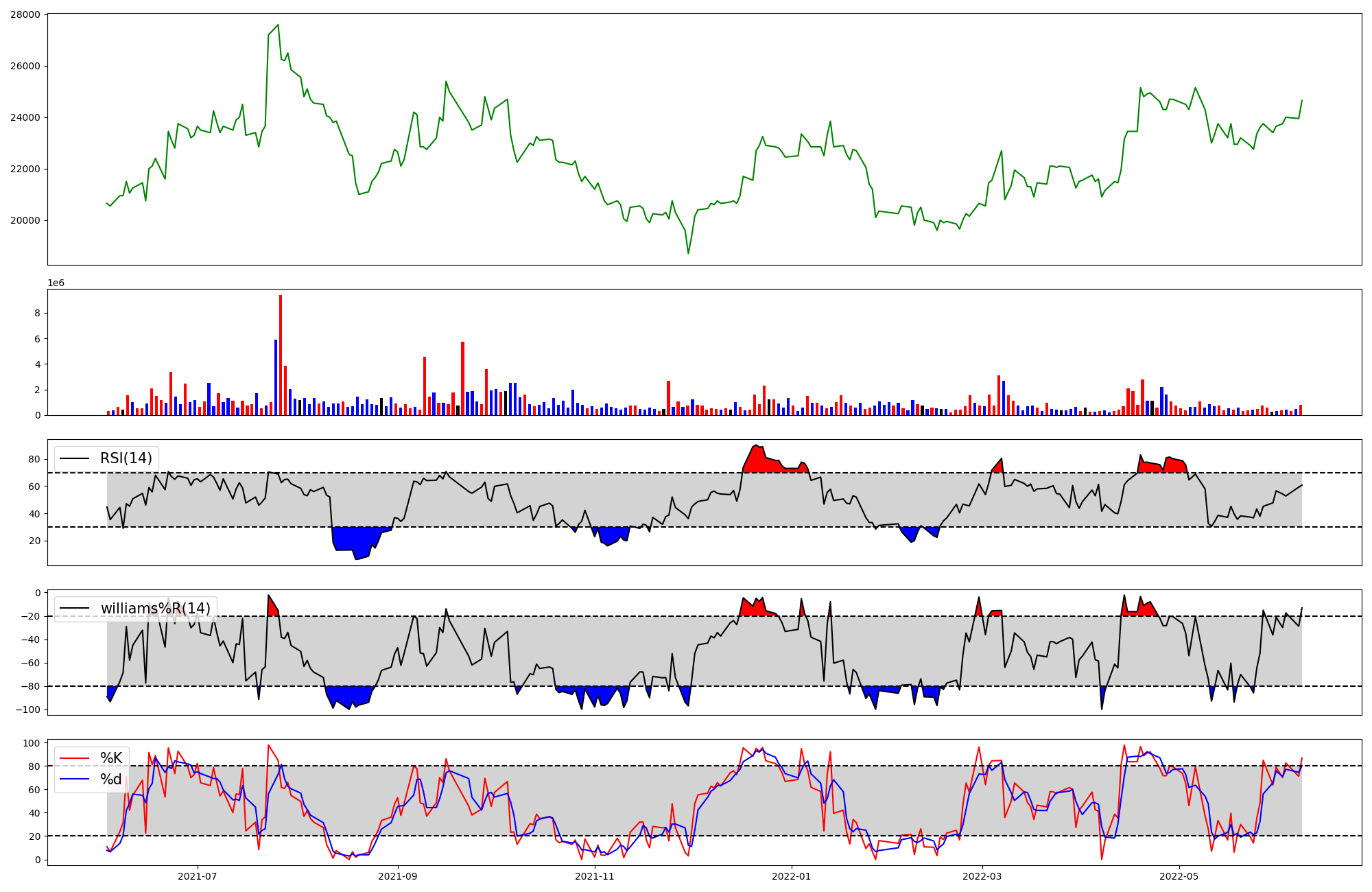 | RSI | Williams %R | stochastic(%K) | |