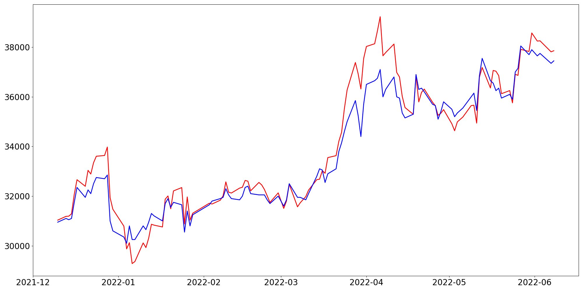 [ - : 실제값(종가) / - : 예측값(종가) ]