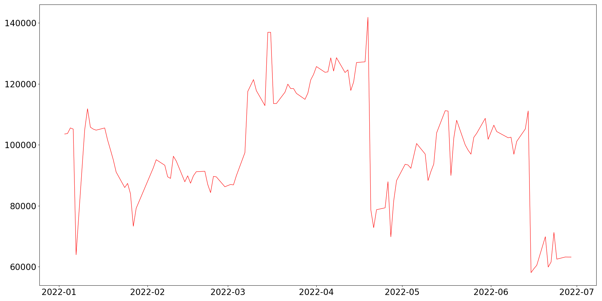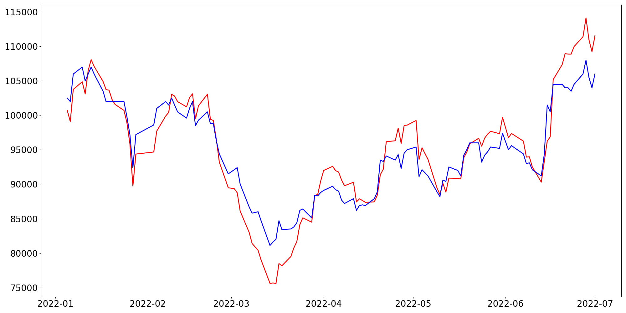 [ - : 실제값(종가) / - : 예측값(종가) ]