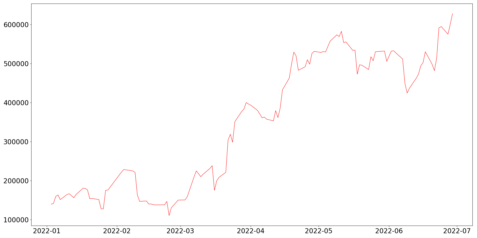 [ - : 실제값(종가) / - : 예측값(종가) ]