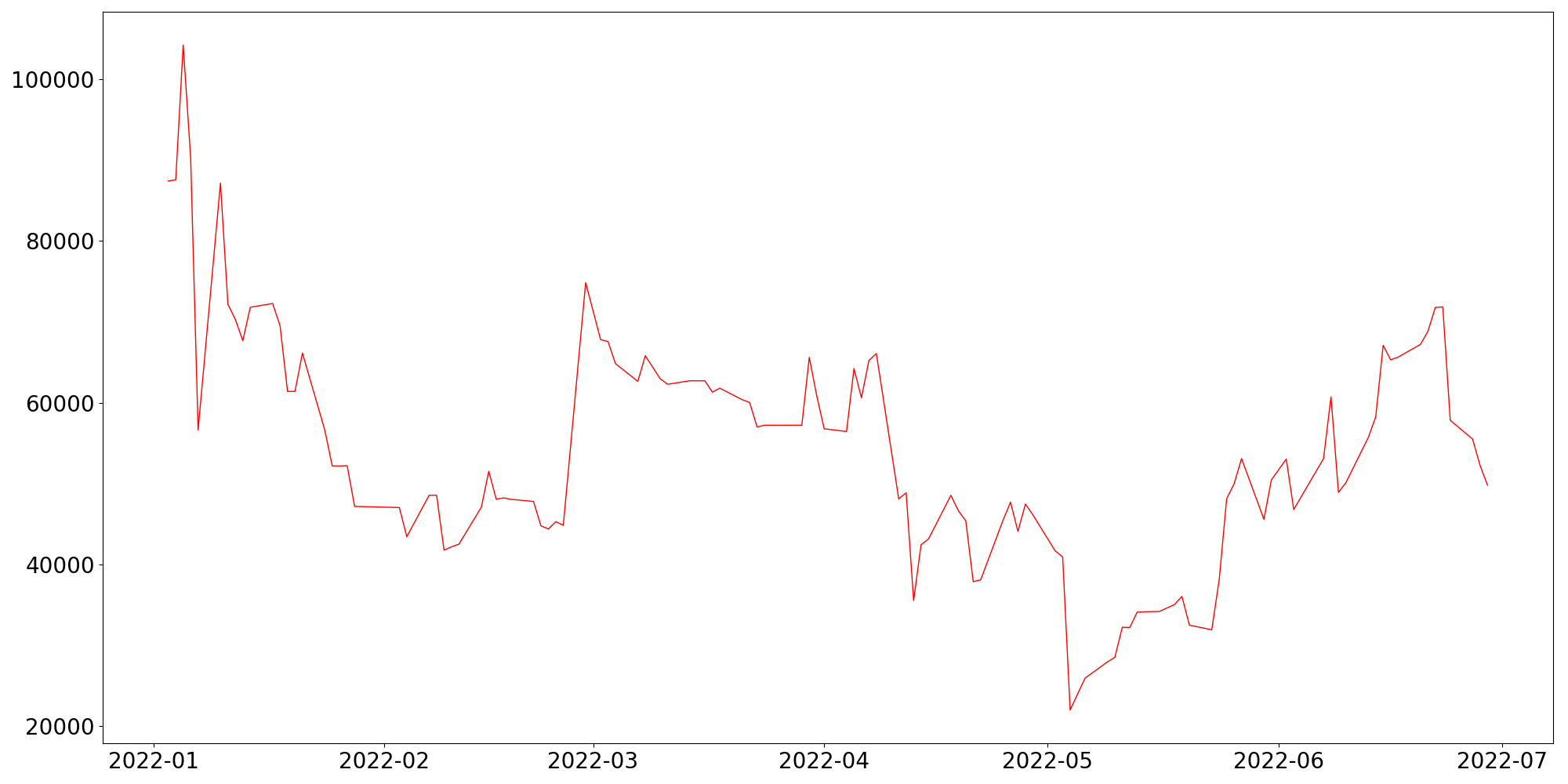 [ - : 실제값(종가) / - : 예측값(종가) ]