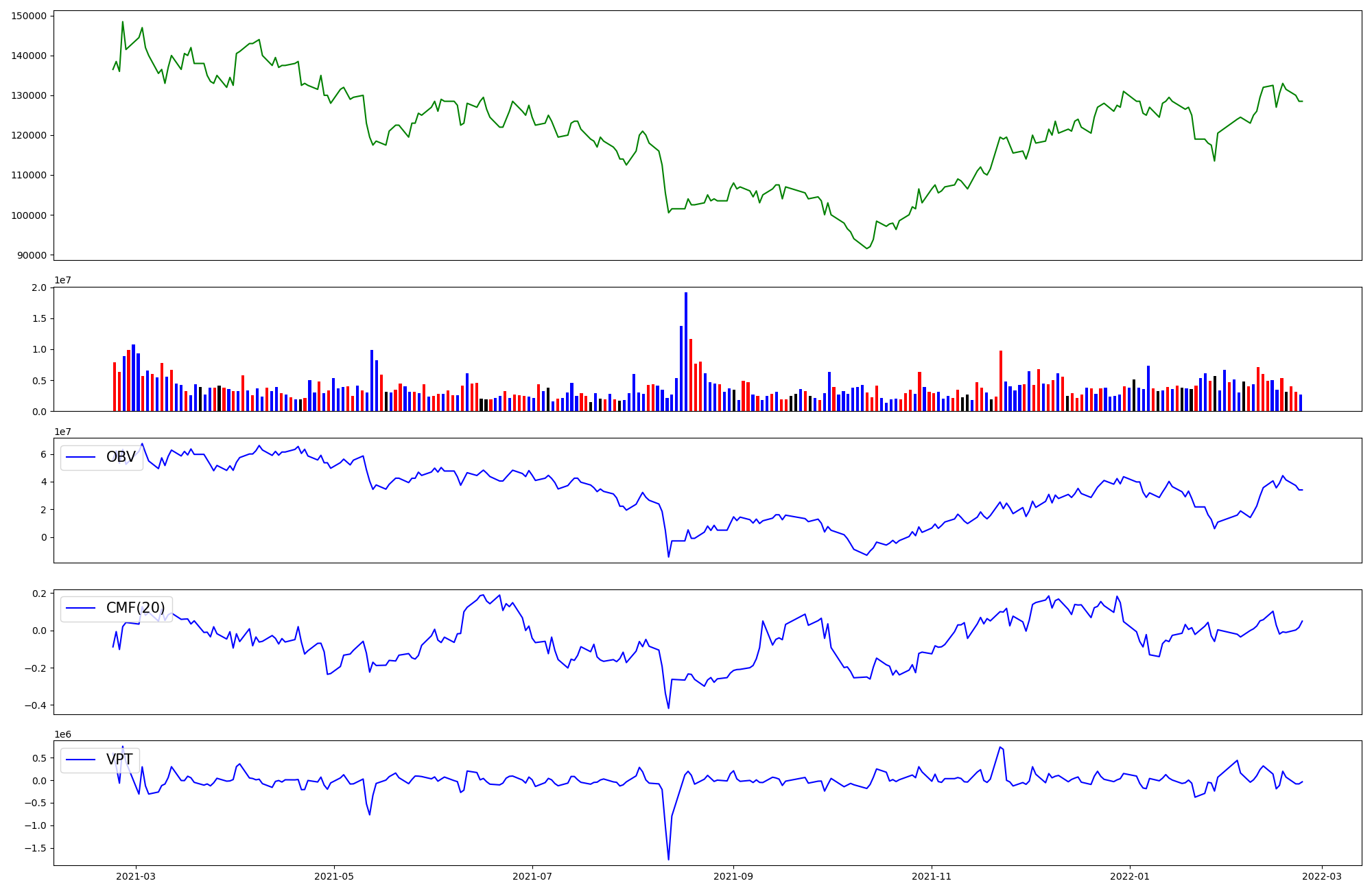 | OBV | CMF | VPT | |