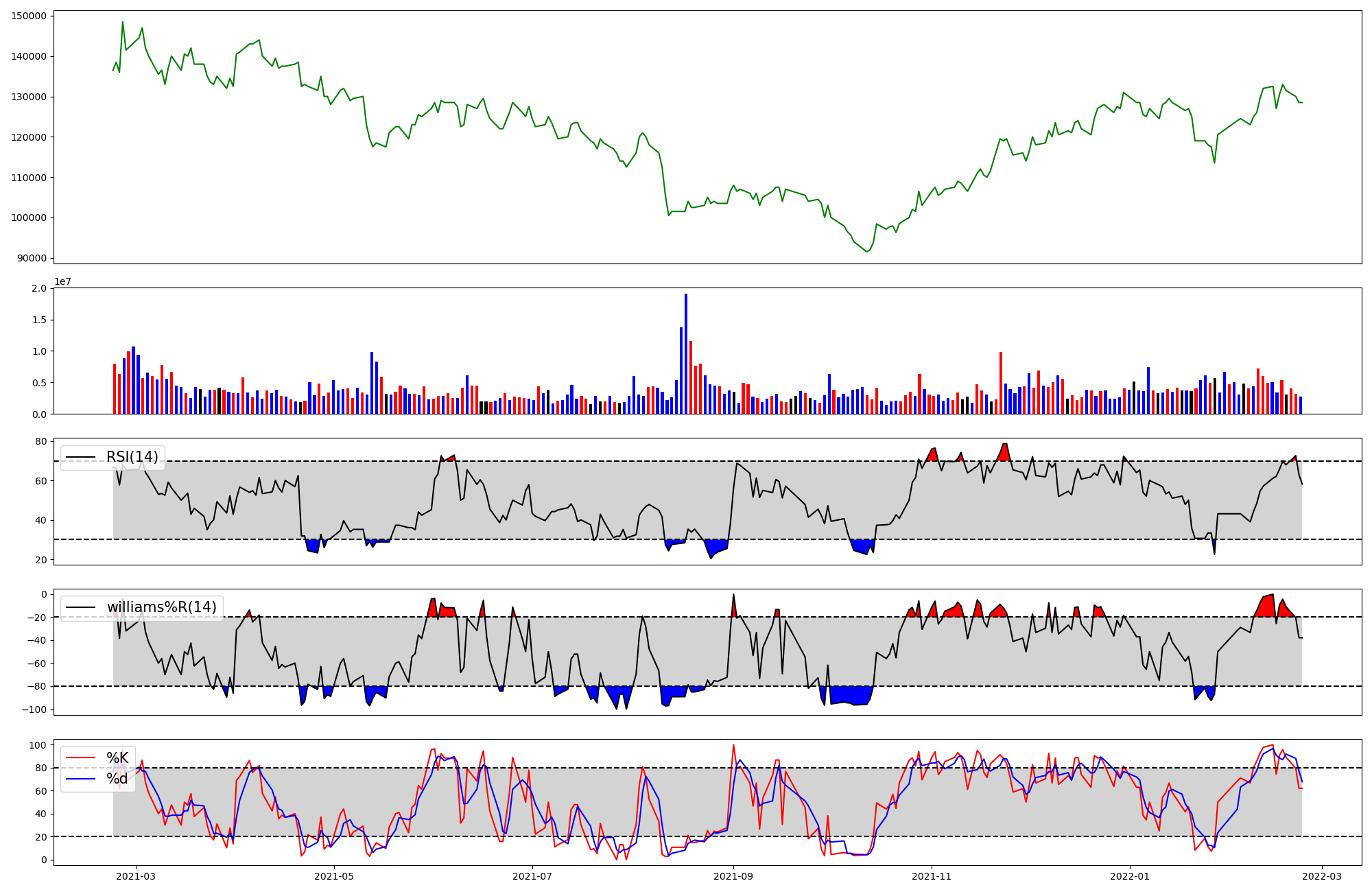 | RSI | Williams %R | stochastic(%K) | |