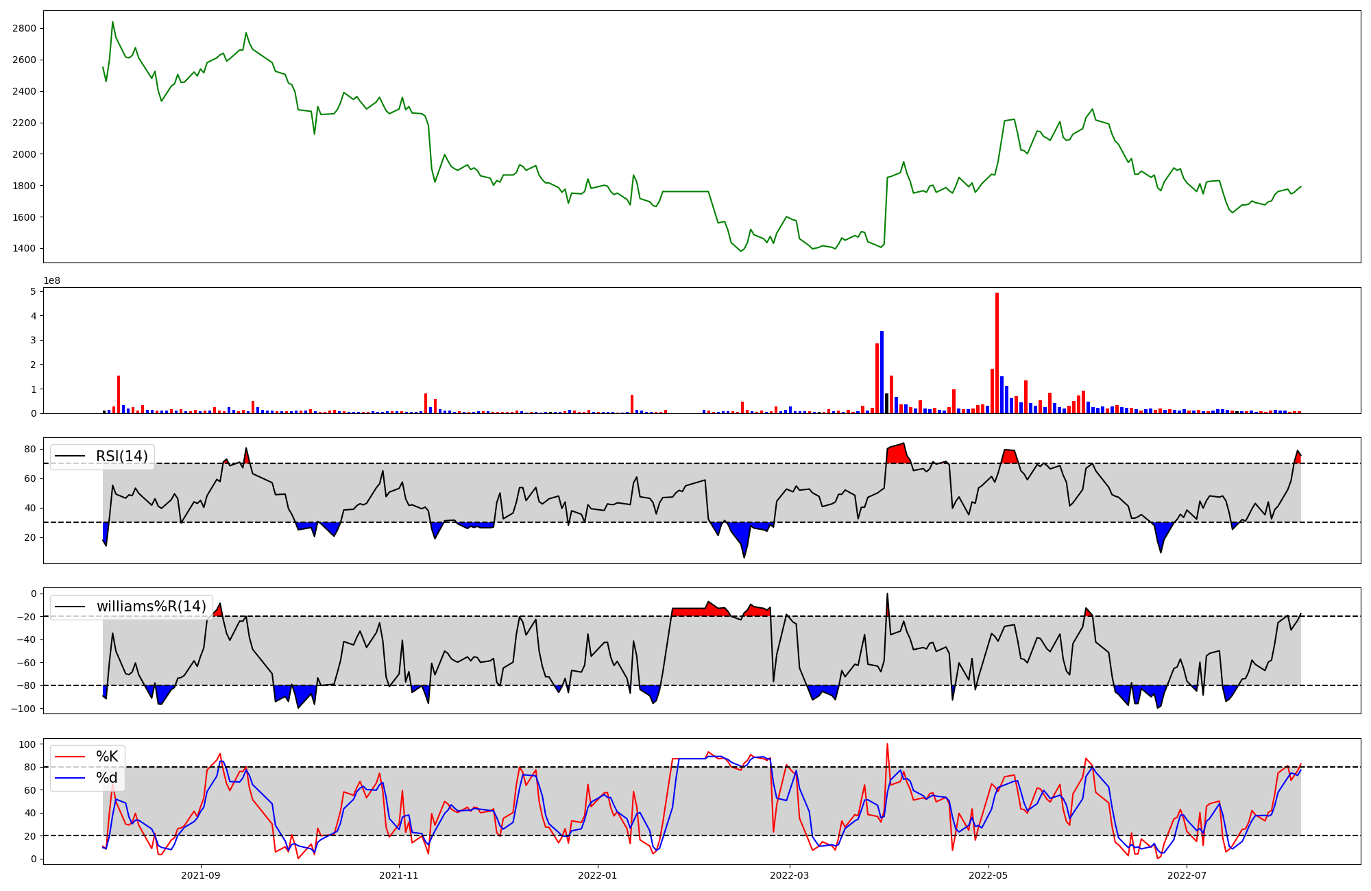 | RSI | Williams %R | stochastic(%K) | |