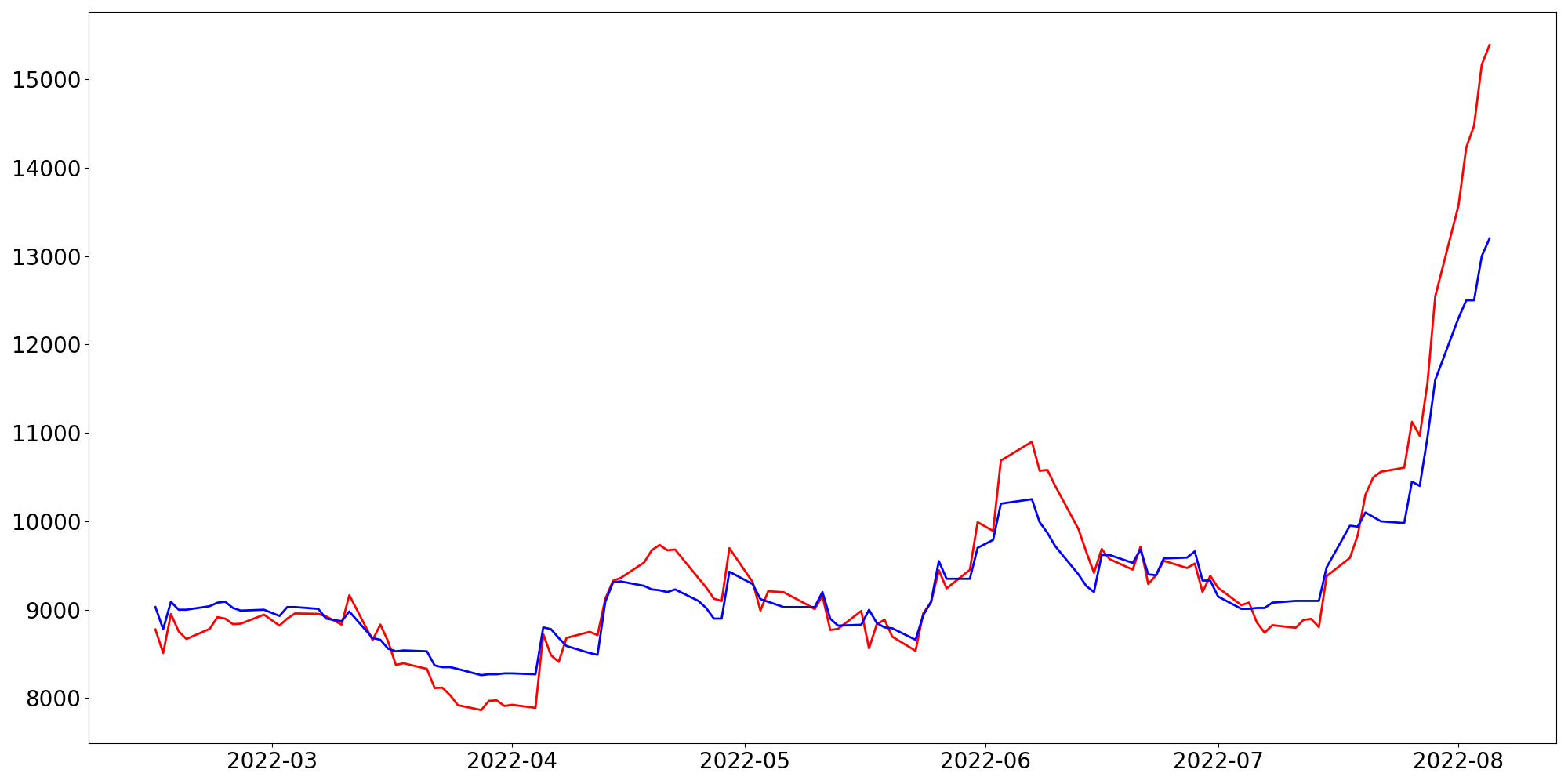 [ - : 실제값(종가) / - : 예측값(종가) ]