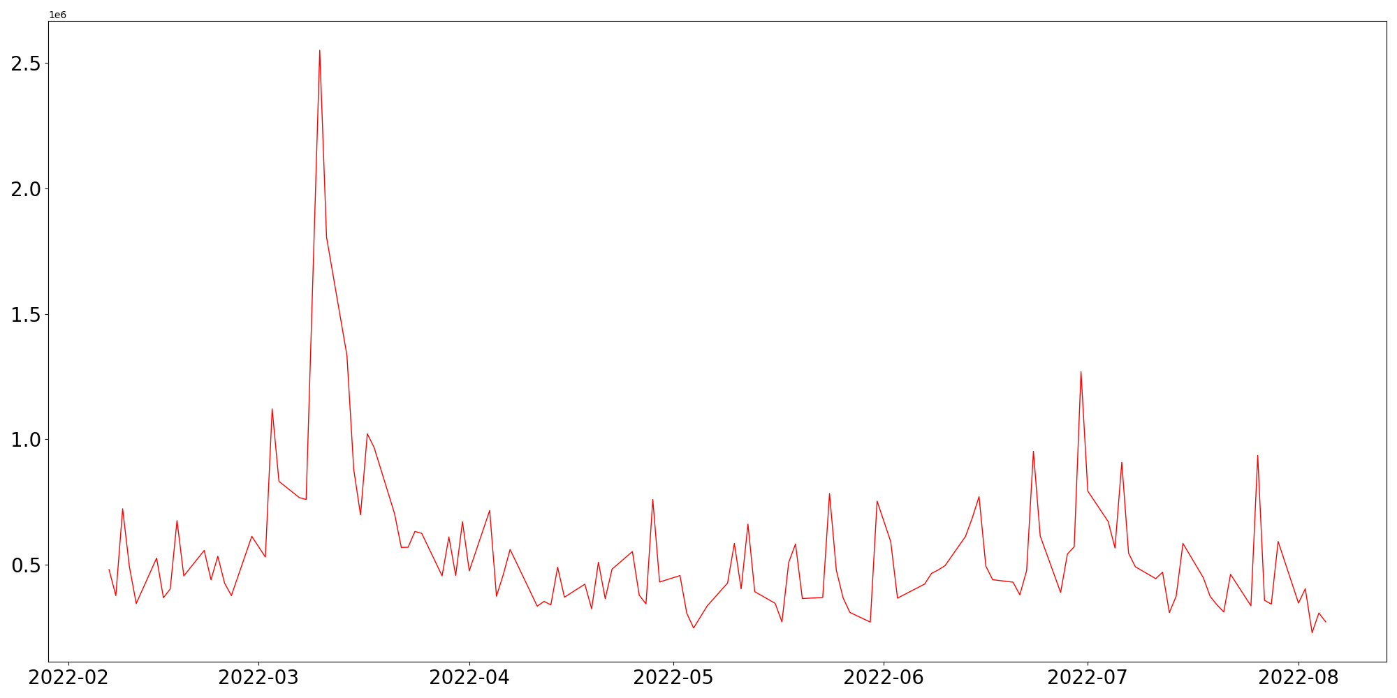 [ - : 실제값(종가) / - : 예측값(종가) ]