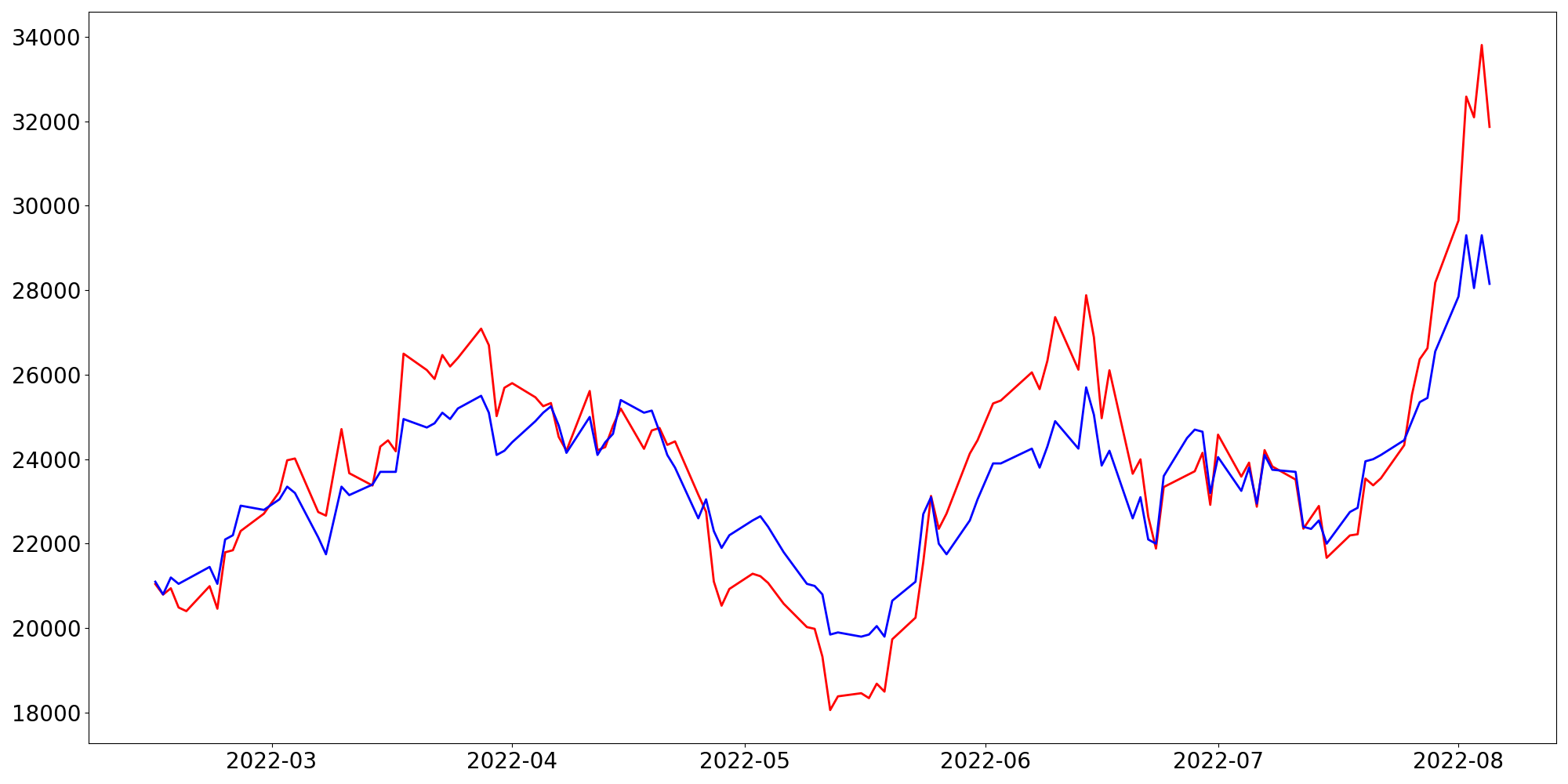 [ - : 실제값(종가) / - : 예측값(종가) ]