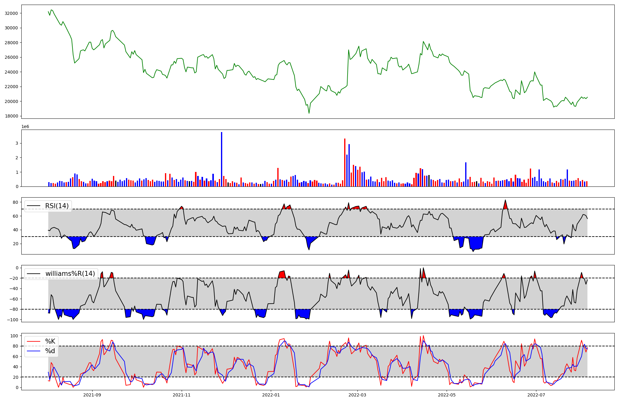 | RSI | Williams %R | stochastic(%K) | |