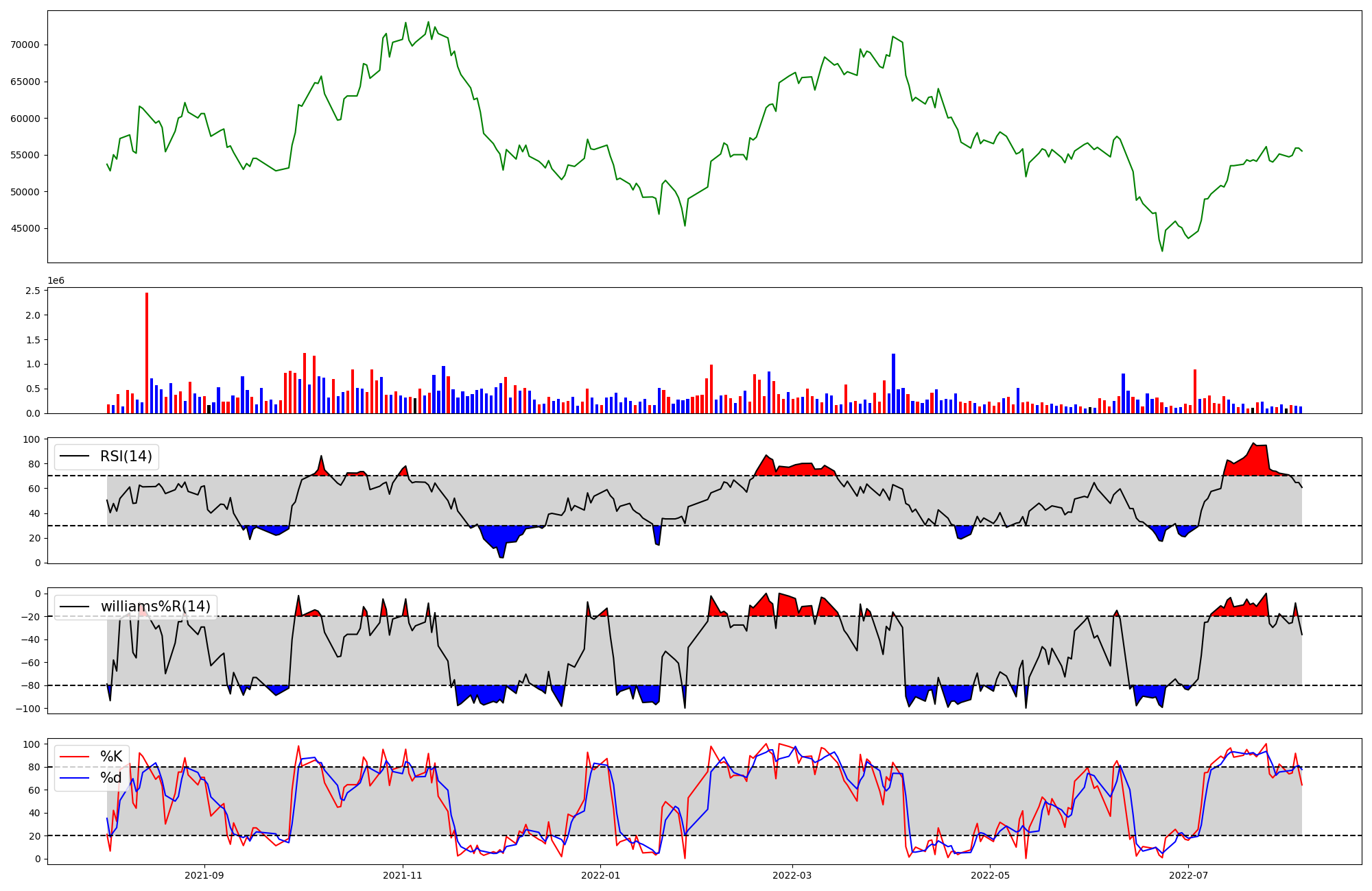| RSI | Williams %R | stochastic(%K) | |