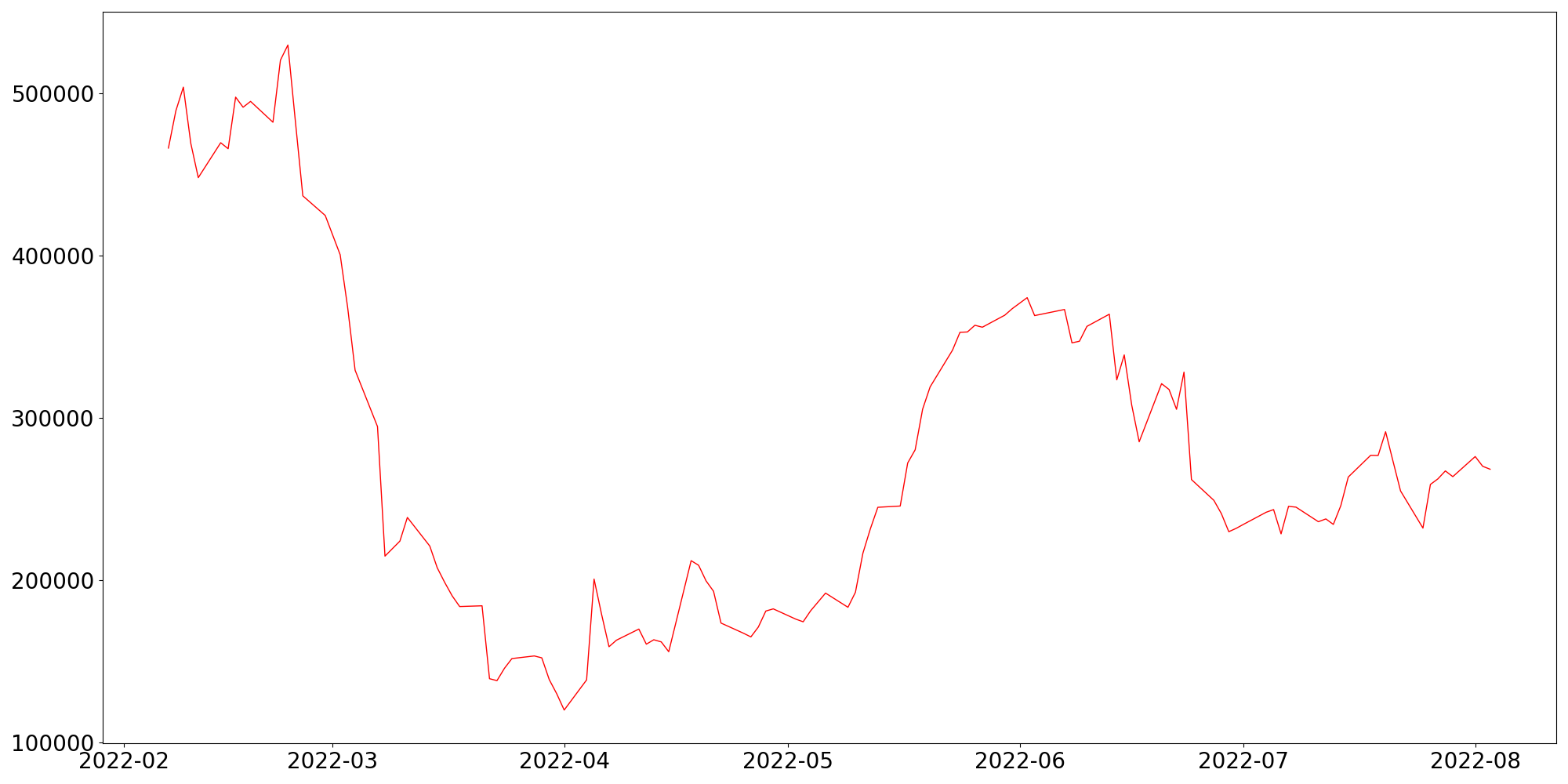 [ - : 실제값(종가) / - : 예측값(종가) ]