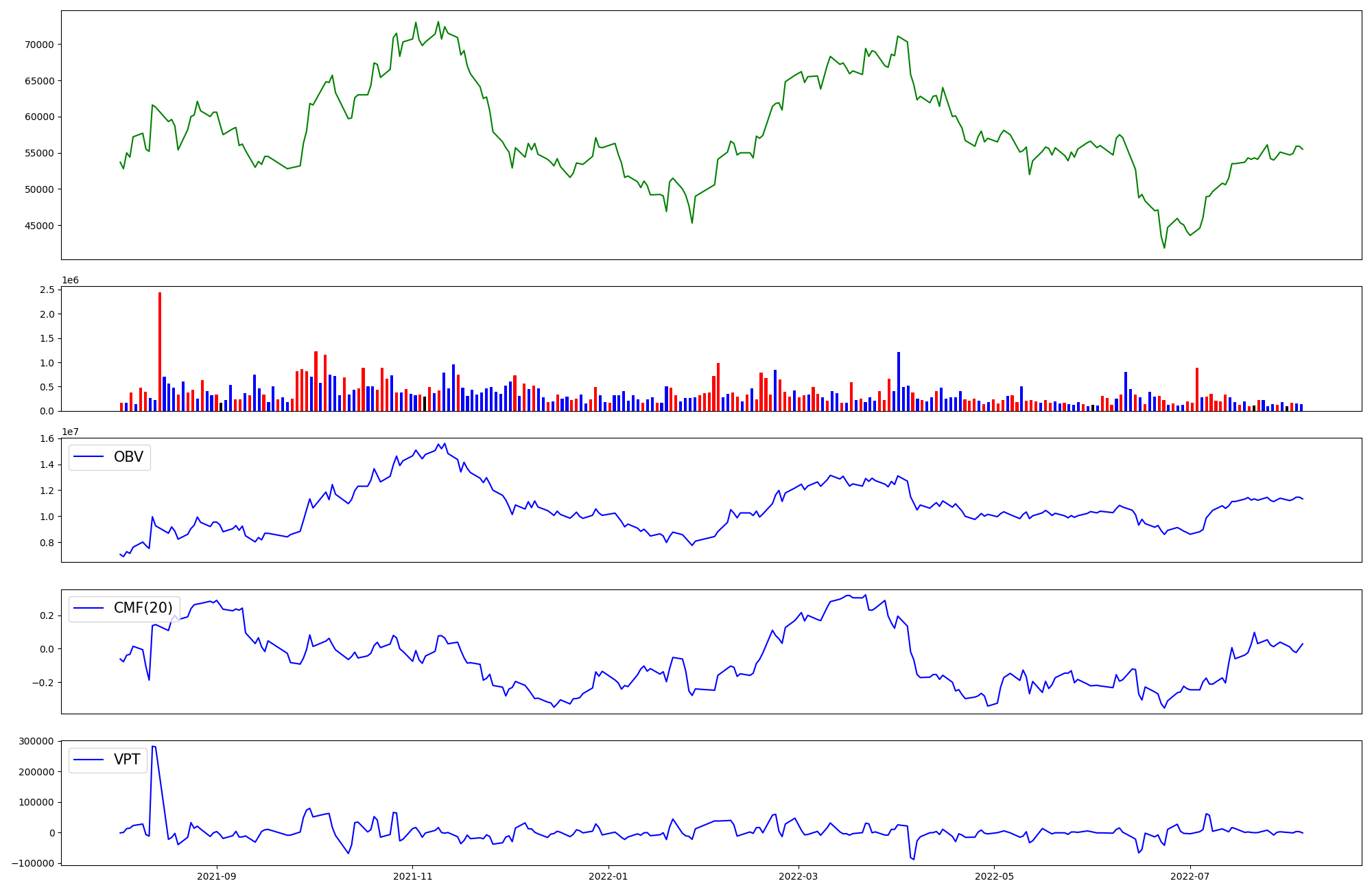 | OBV | CMF | VPT | |