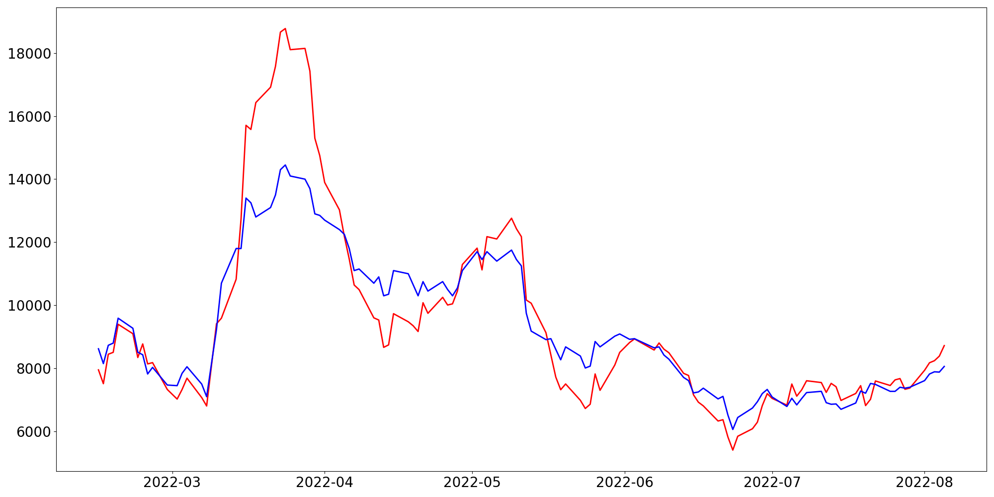 [ - : 실제값(종가) / - : 예측값(종가) ]