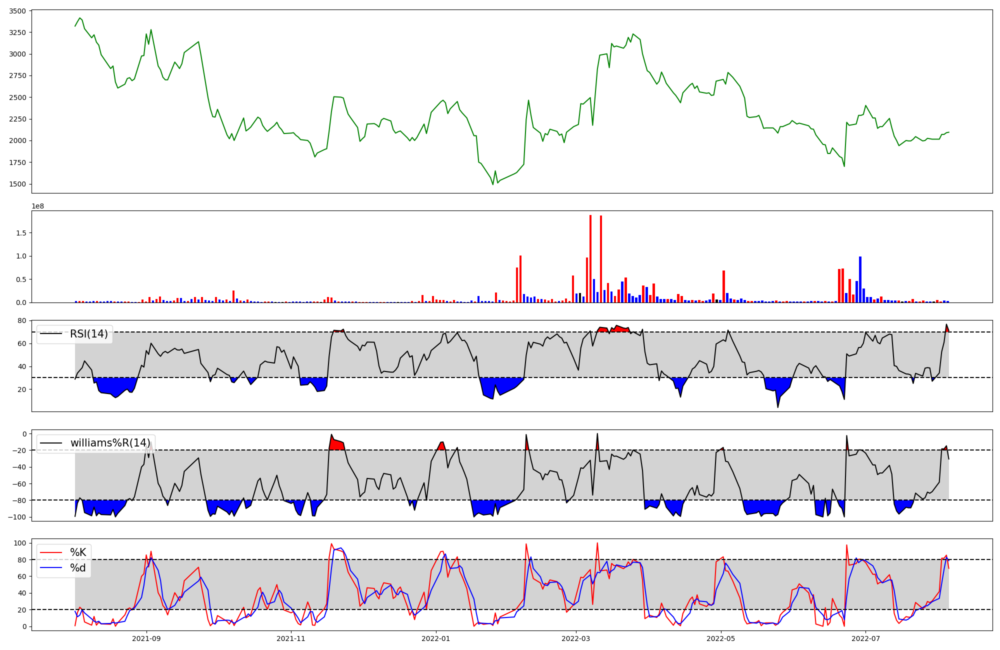 | RSI | Williams %R | stochastic(%K) | |
