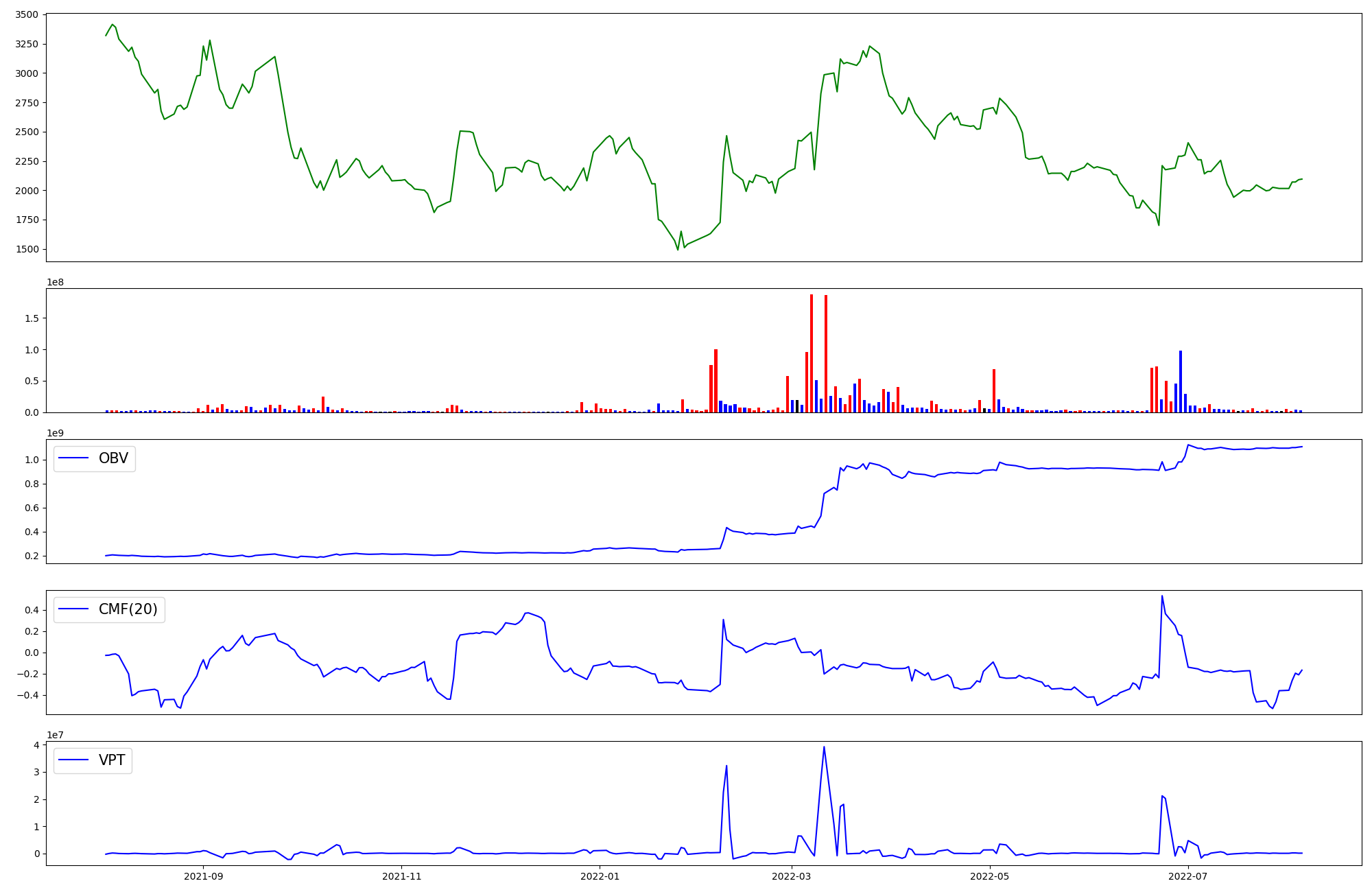 | OBV | CMF | VPT | |