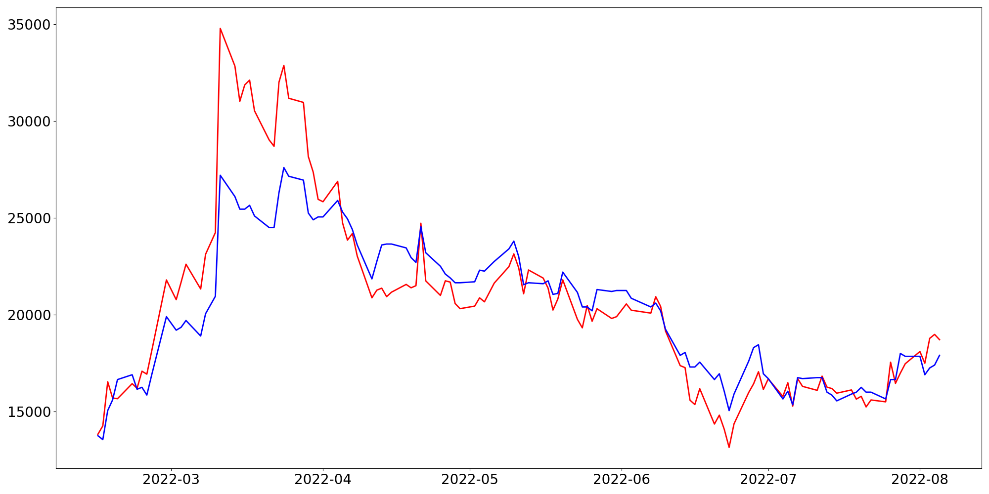 [ - : 실제값(종가) / - : 예측값(종가) ]
