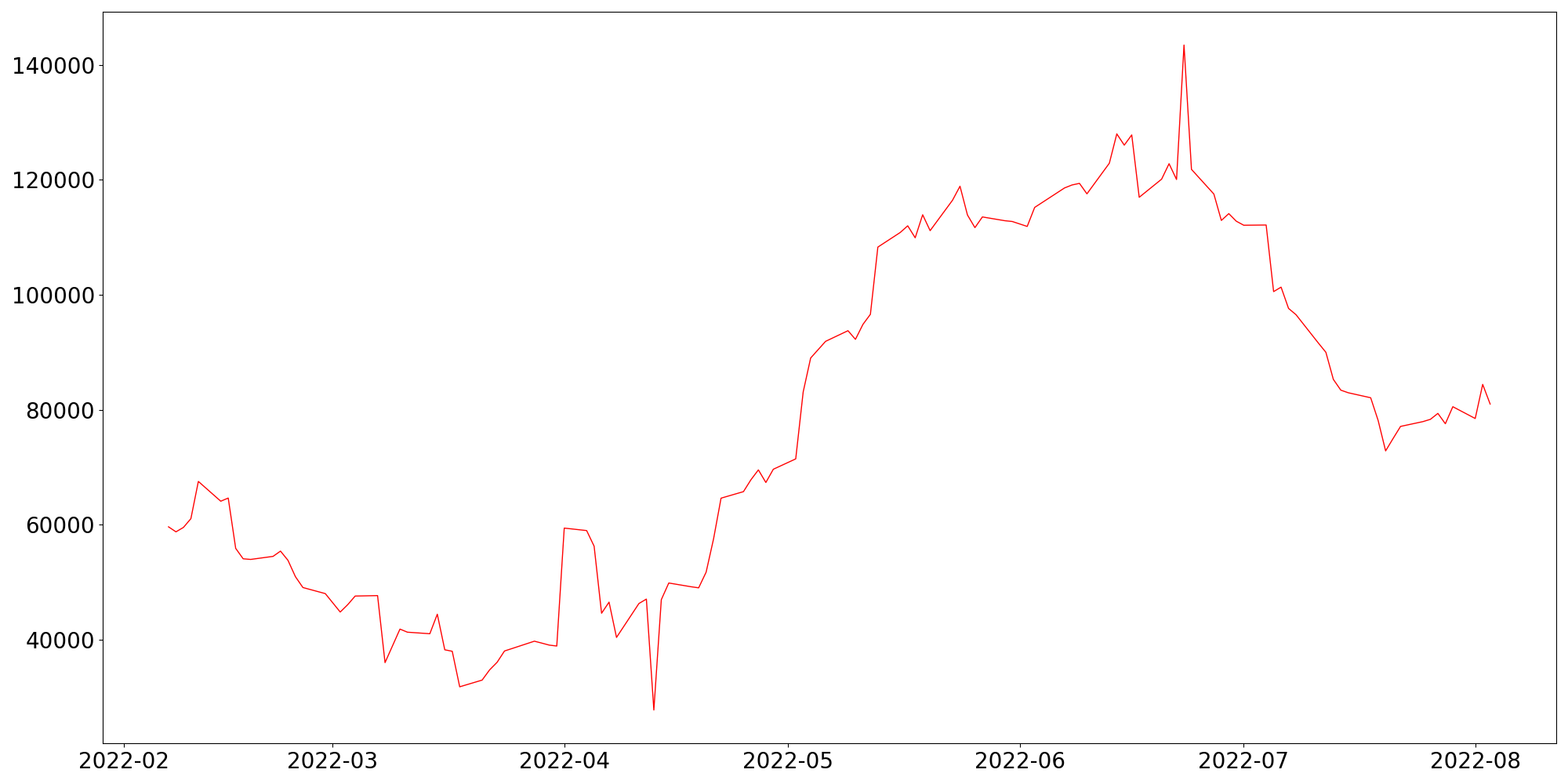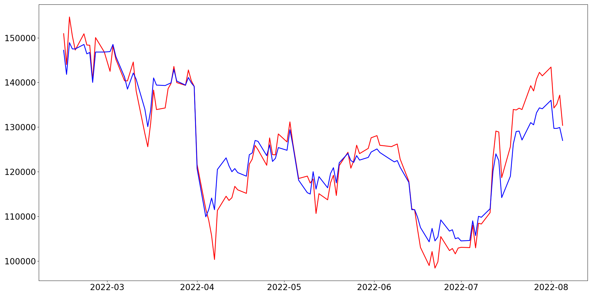 [ - : 실제값(종가) / - : 예측값(종가) ]