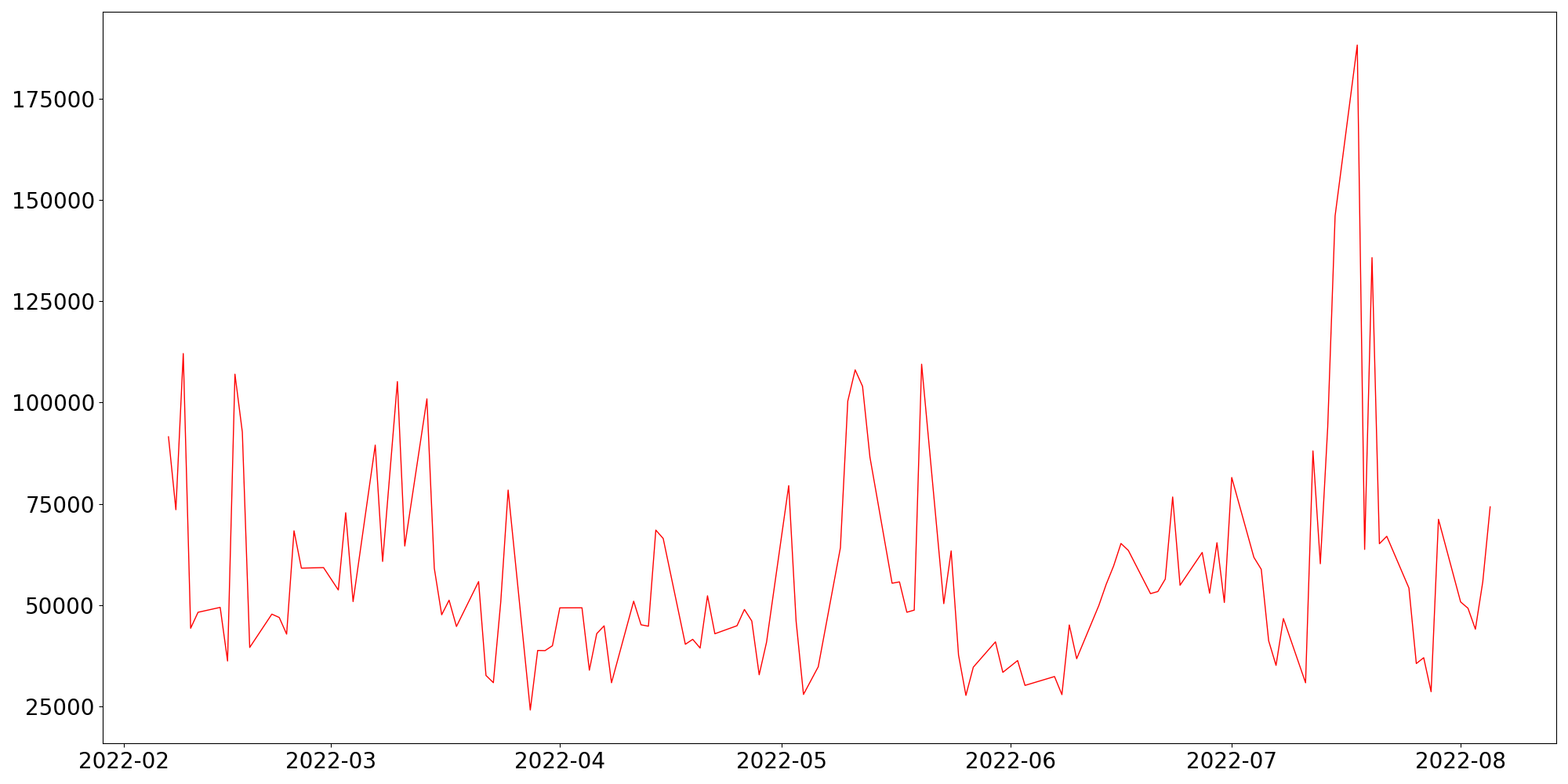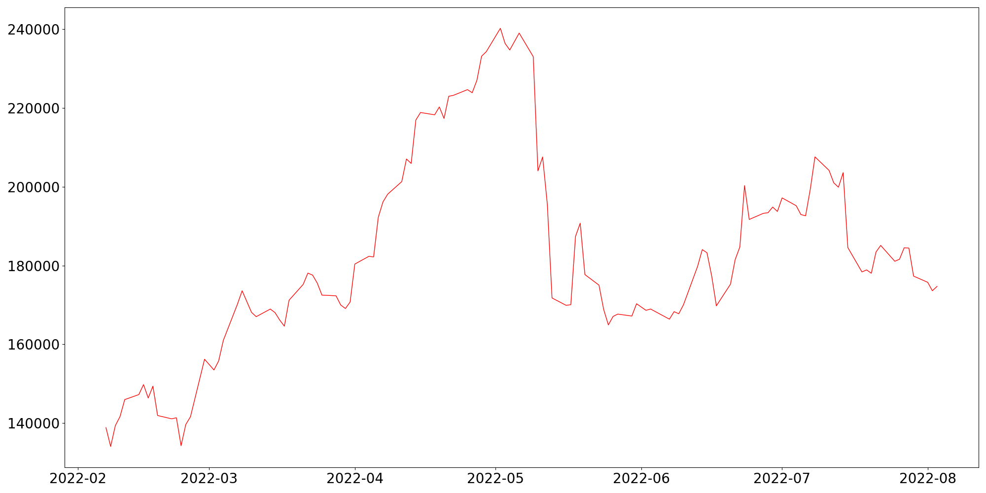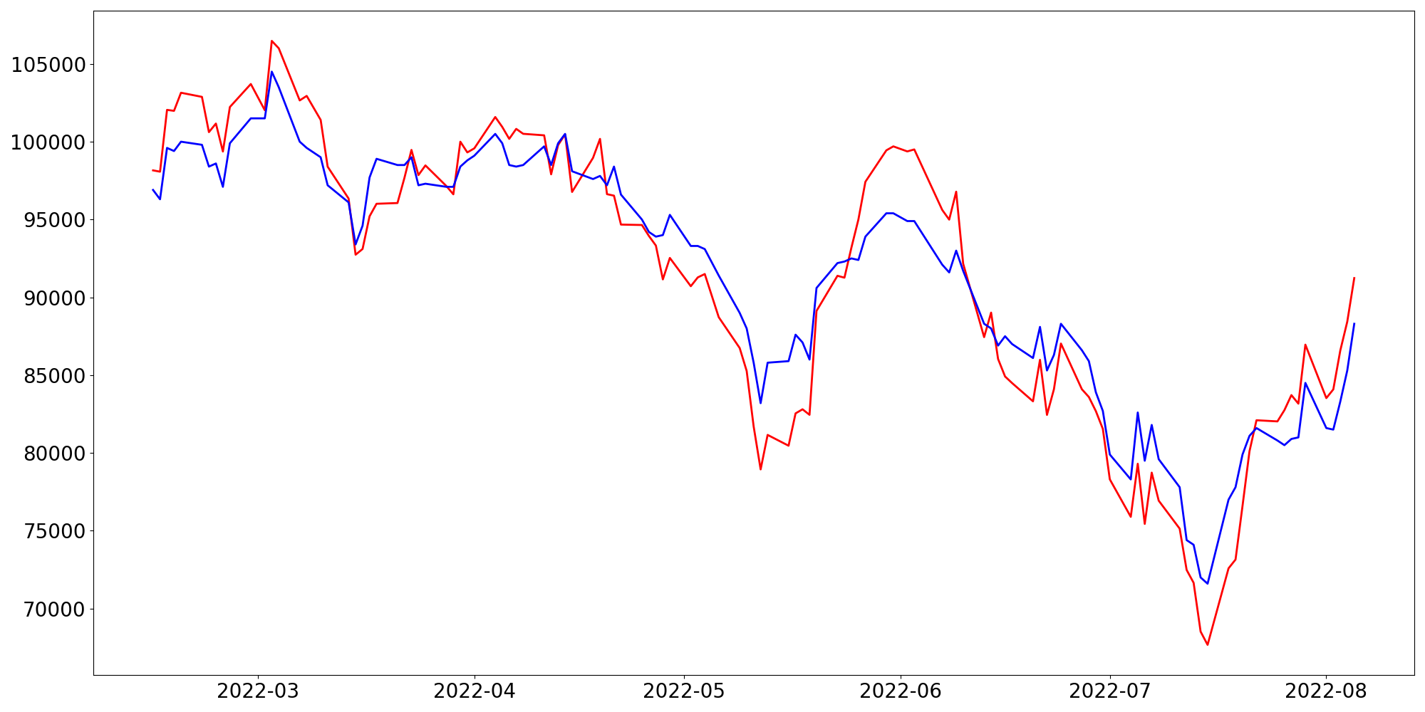 [ - : 실제값(종가) / - : 예측값(종가) ]