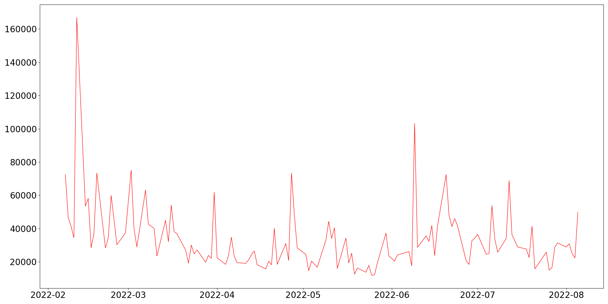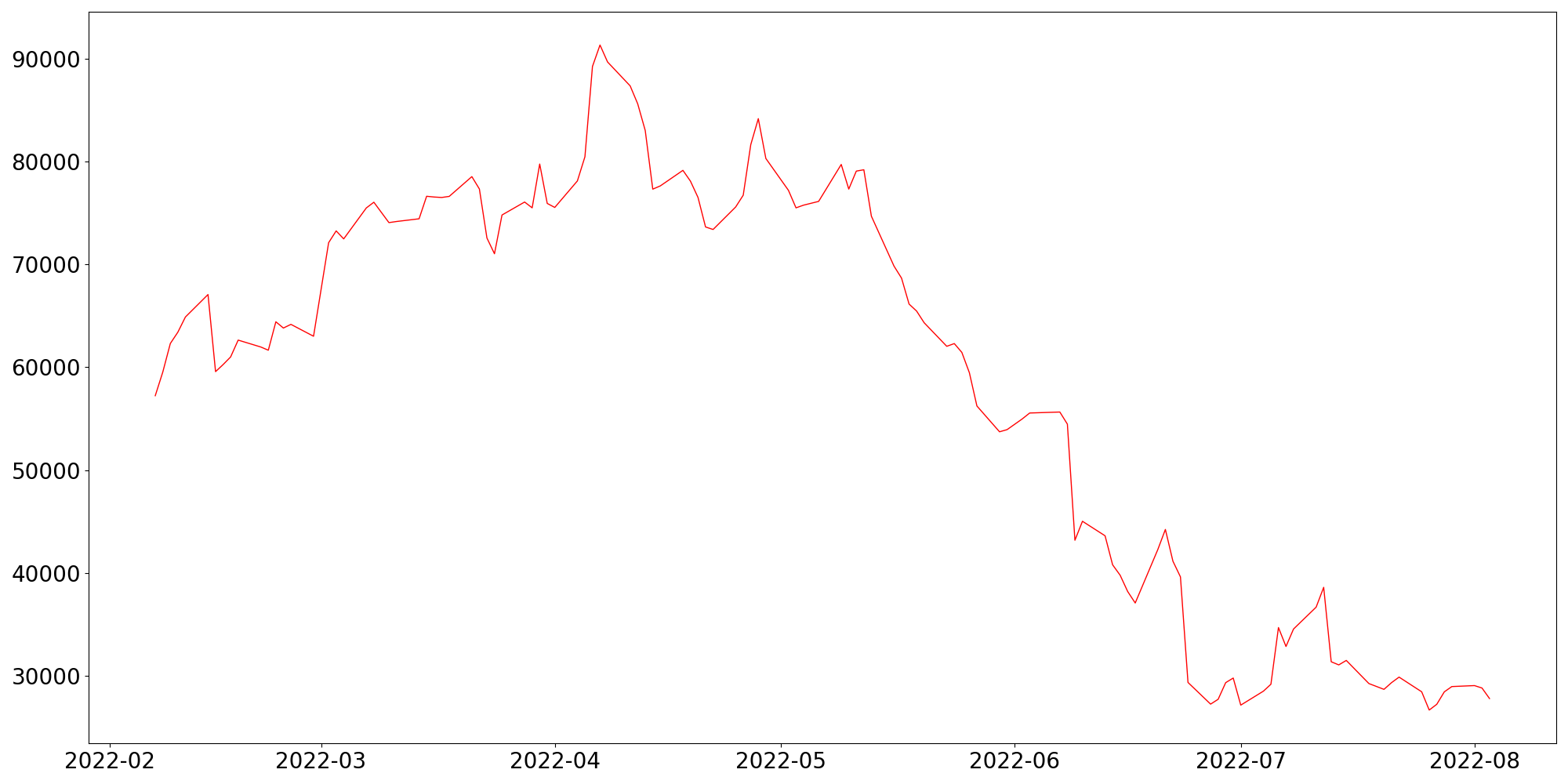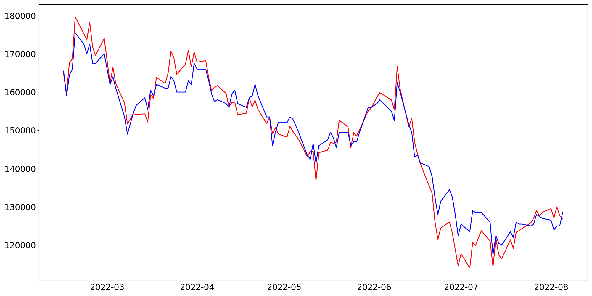 [ - : 실제값(종가) / - : 예측값(종가) ]