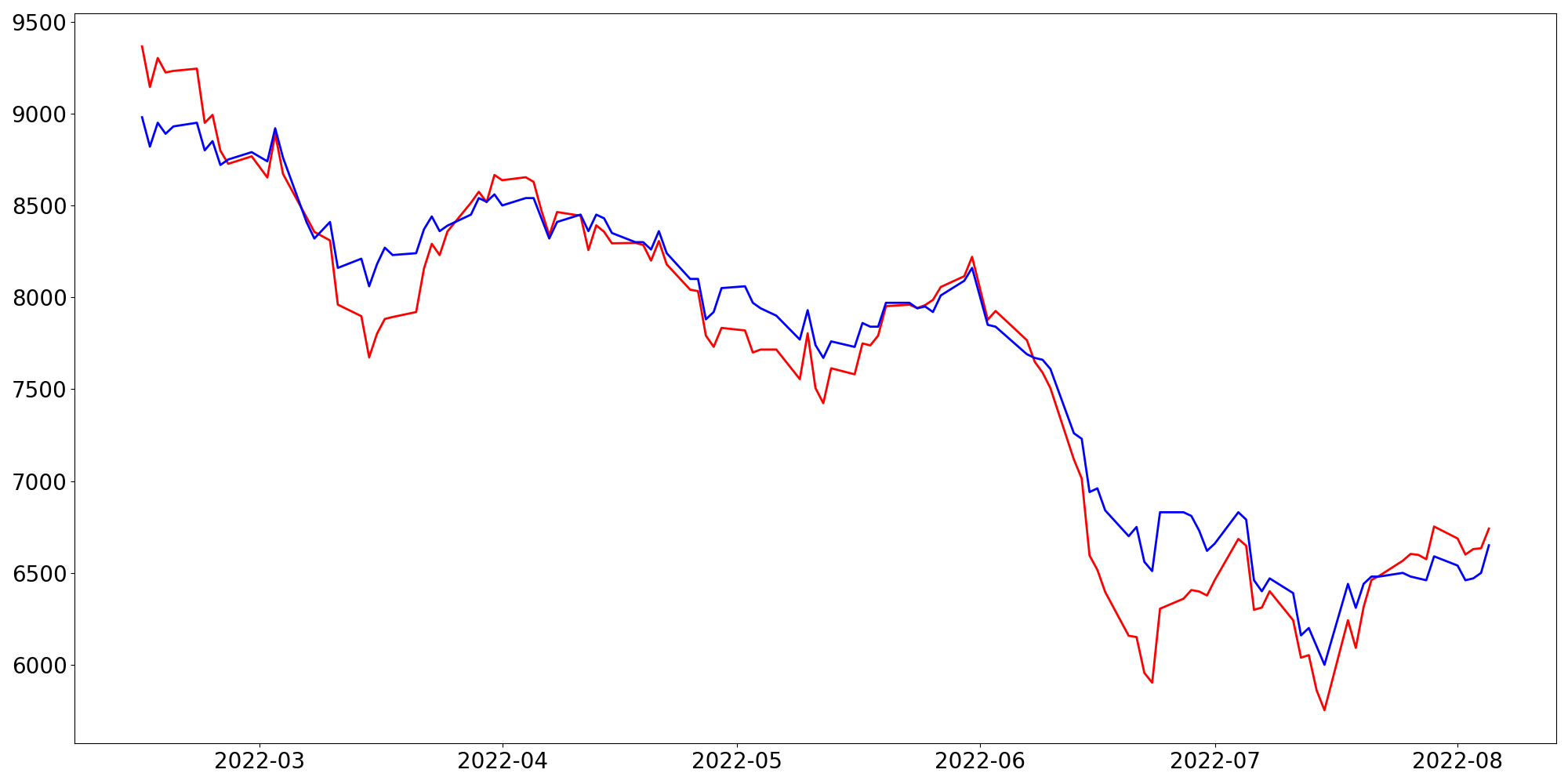 [ - : 실제값(종가) / - : 예측값(종가) ]