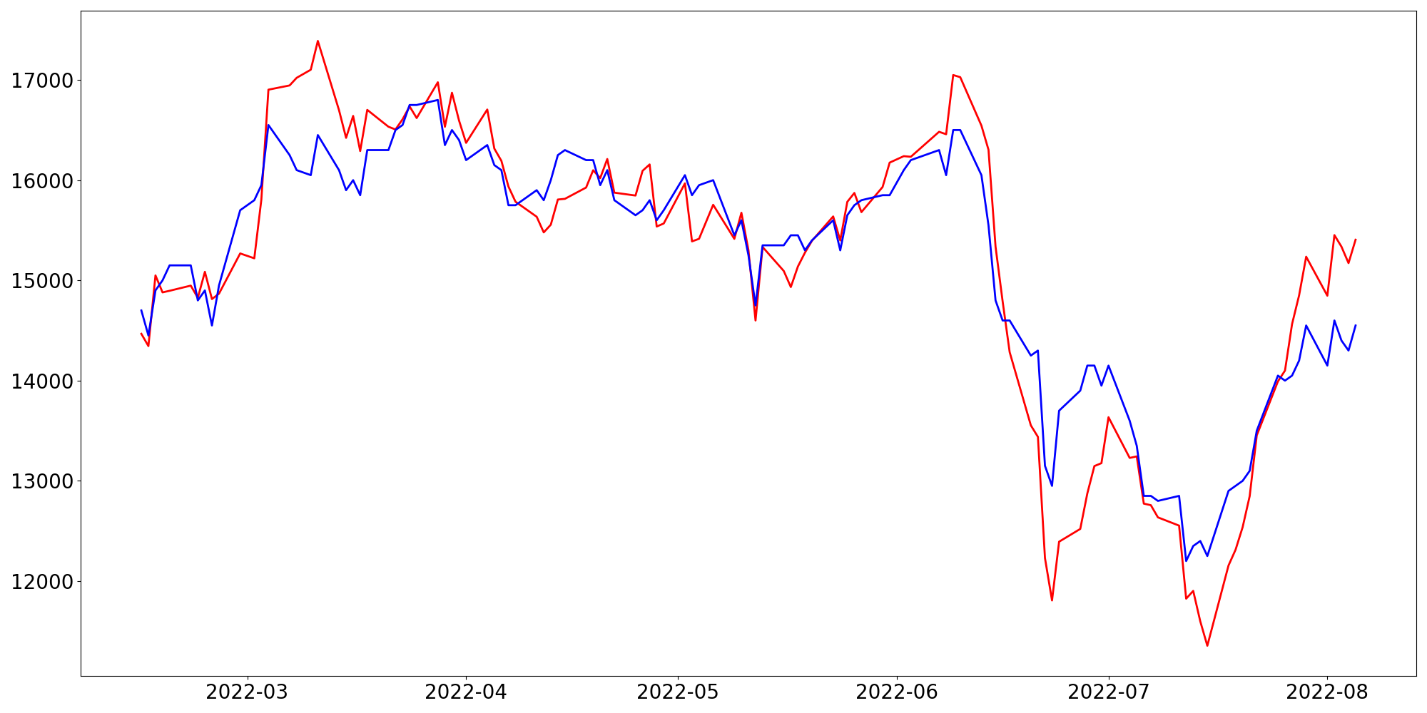 [ - : 실제값(종가) / - : 예측값(종가) ]