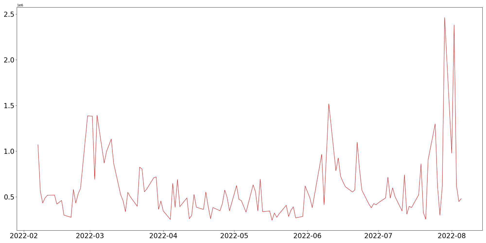 [ - : 실제값(종가) / - : 예측값(종가) ]