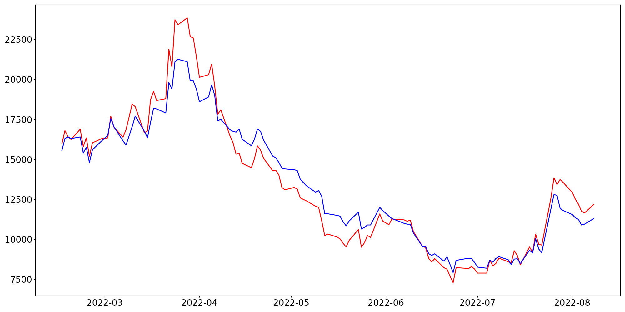[ - : 실제값(종가) / - : 예측값(종가) ]