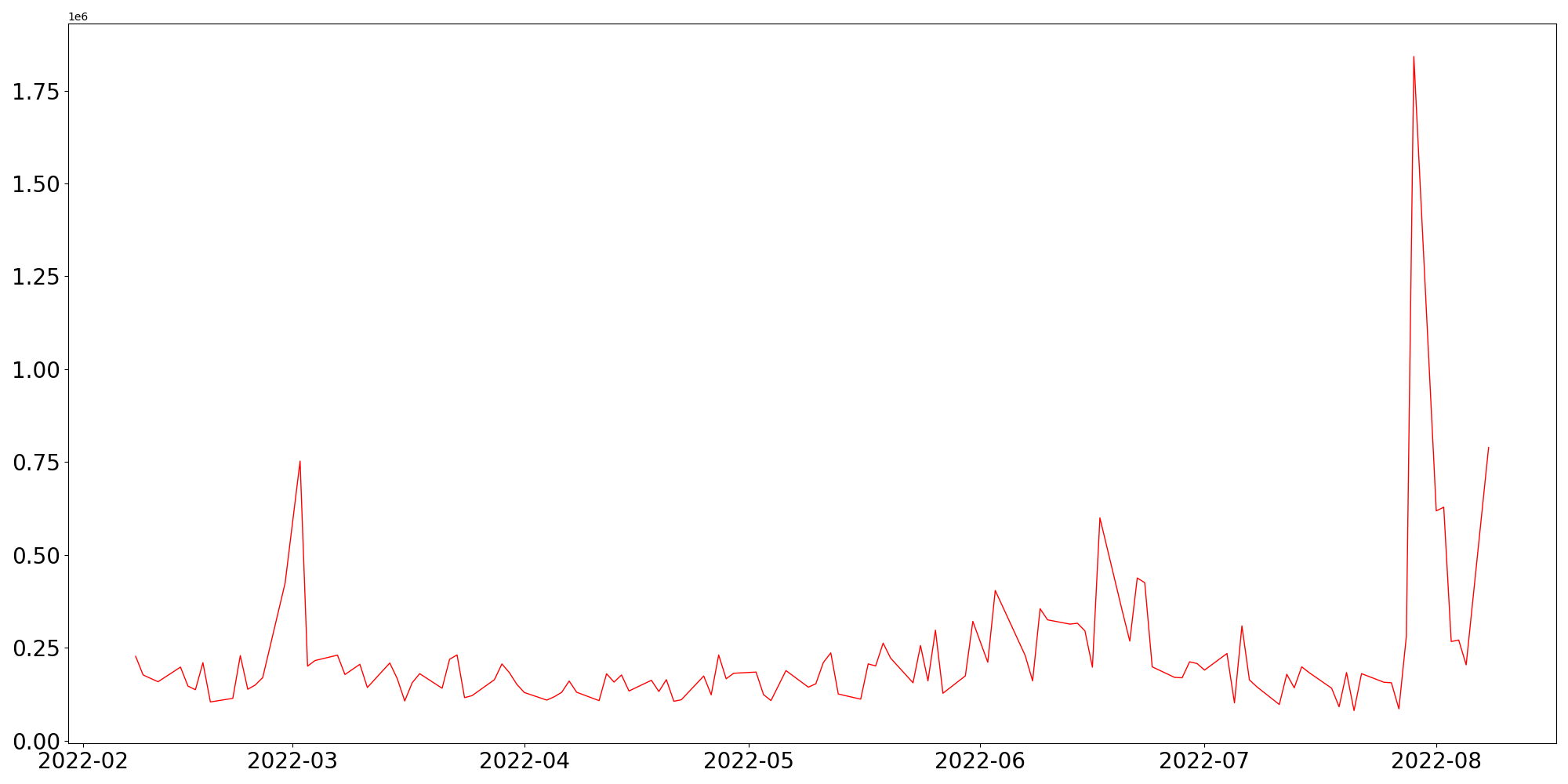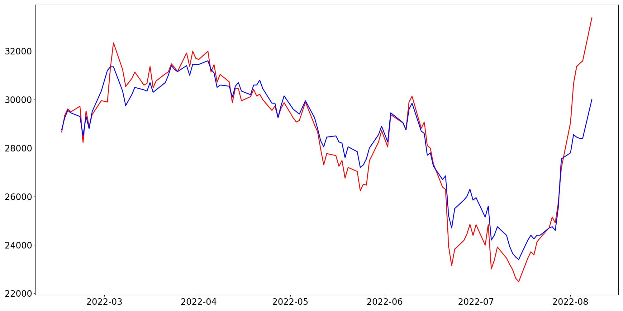 [ - : 실제값(종가) / - : 예측값(종가) ]