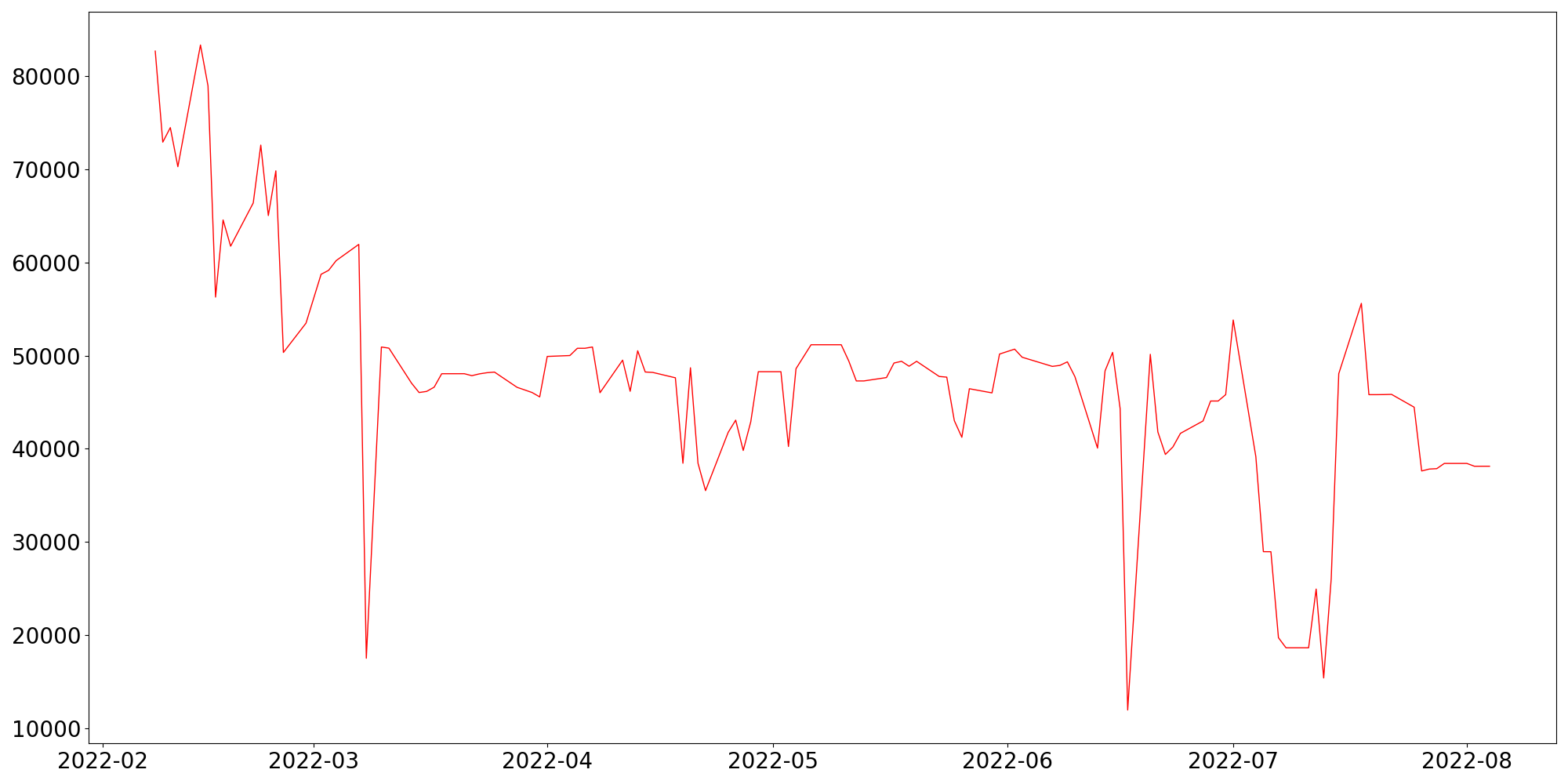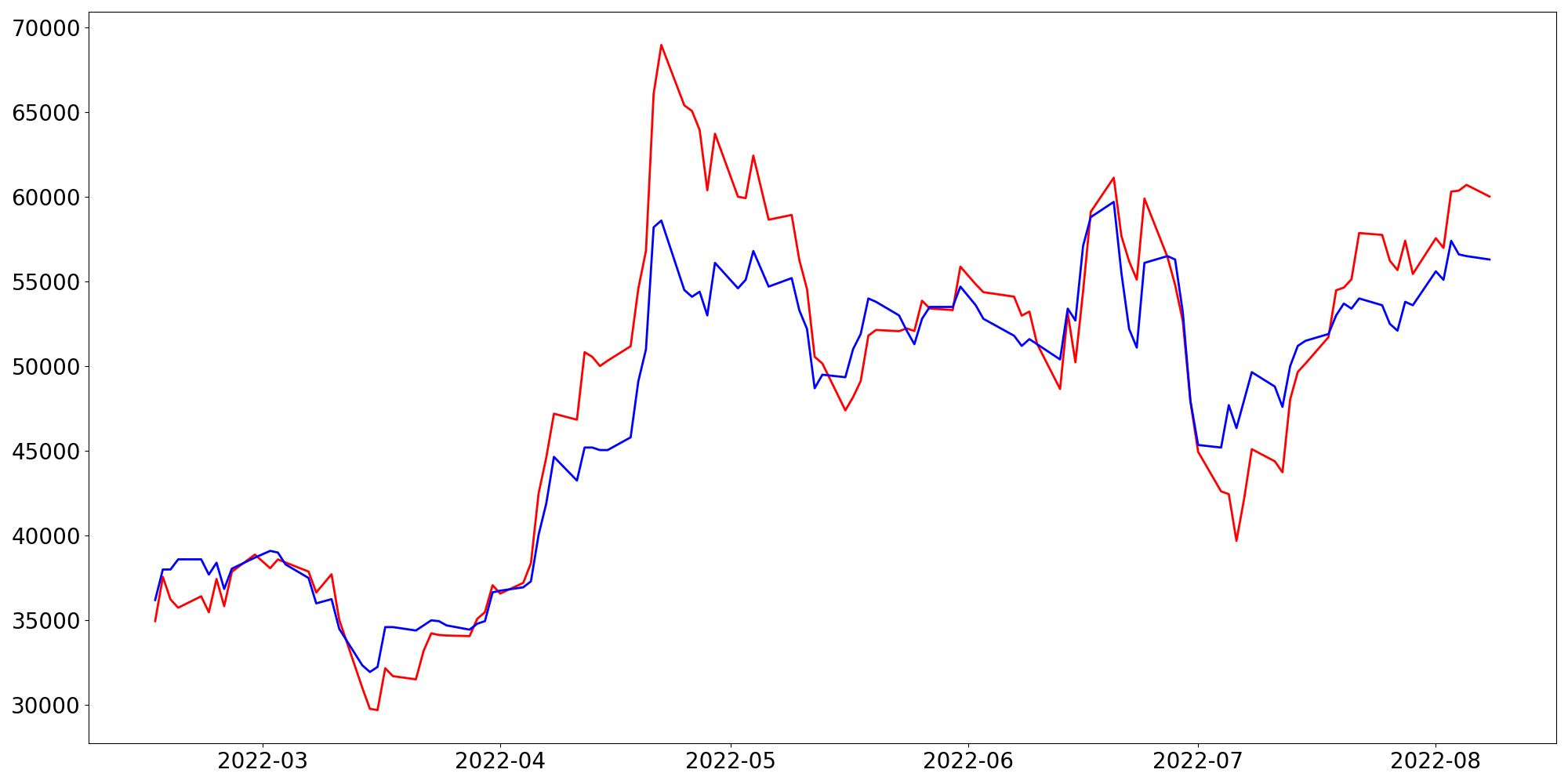 [ - : 실제값(종가) / - : 예측값(종가) ]