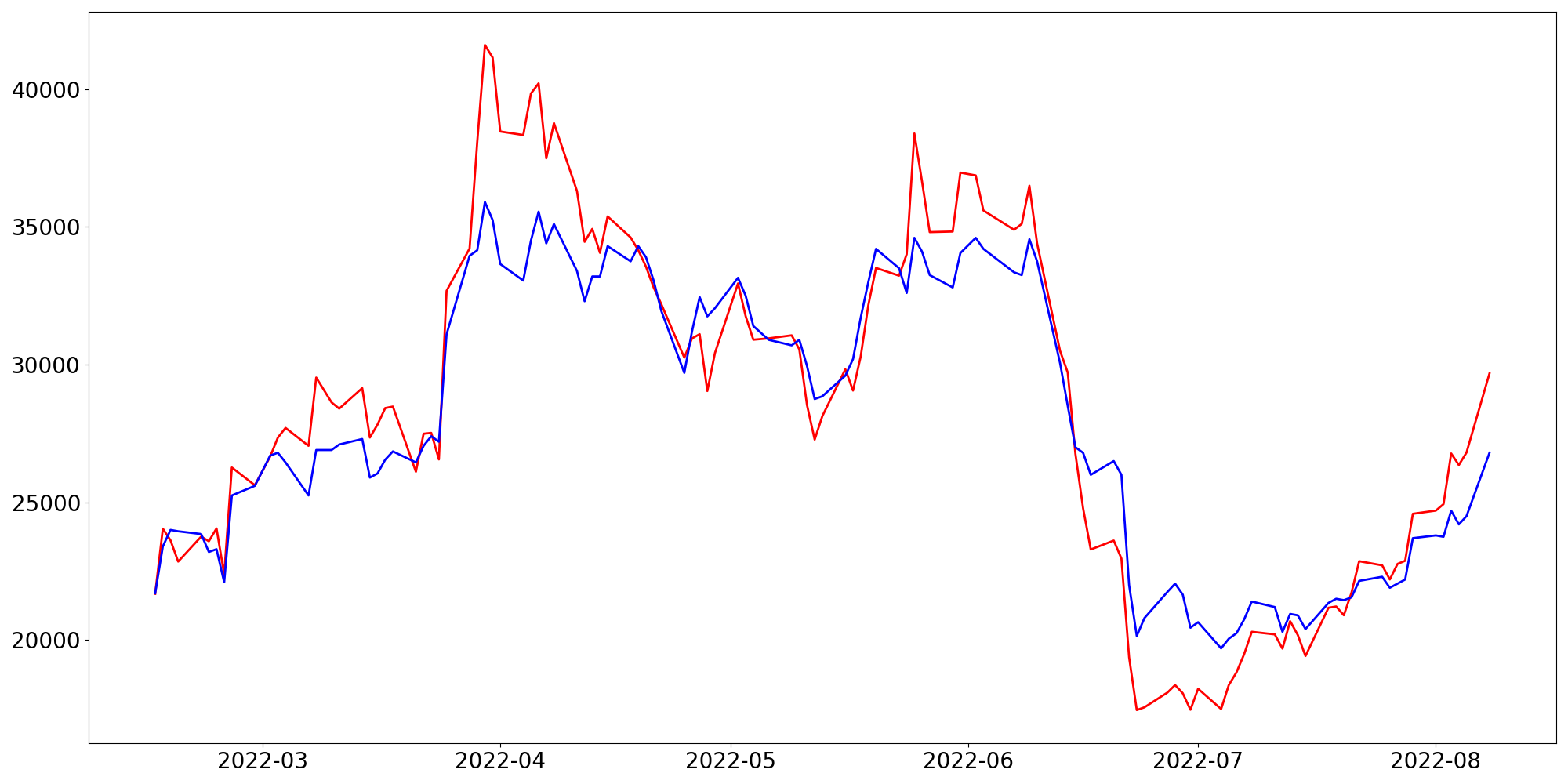 [ - : 실제값(종가) / - : 예측값(종가) ]