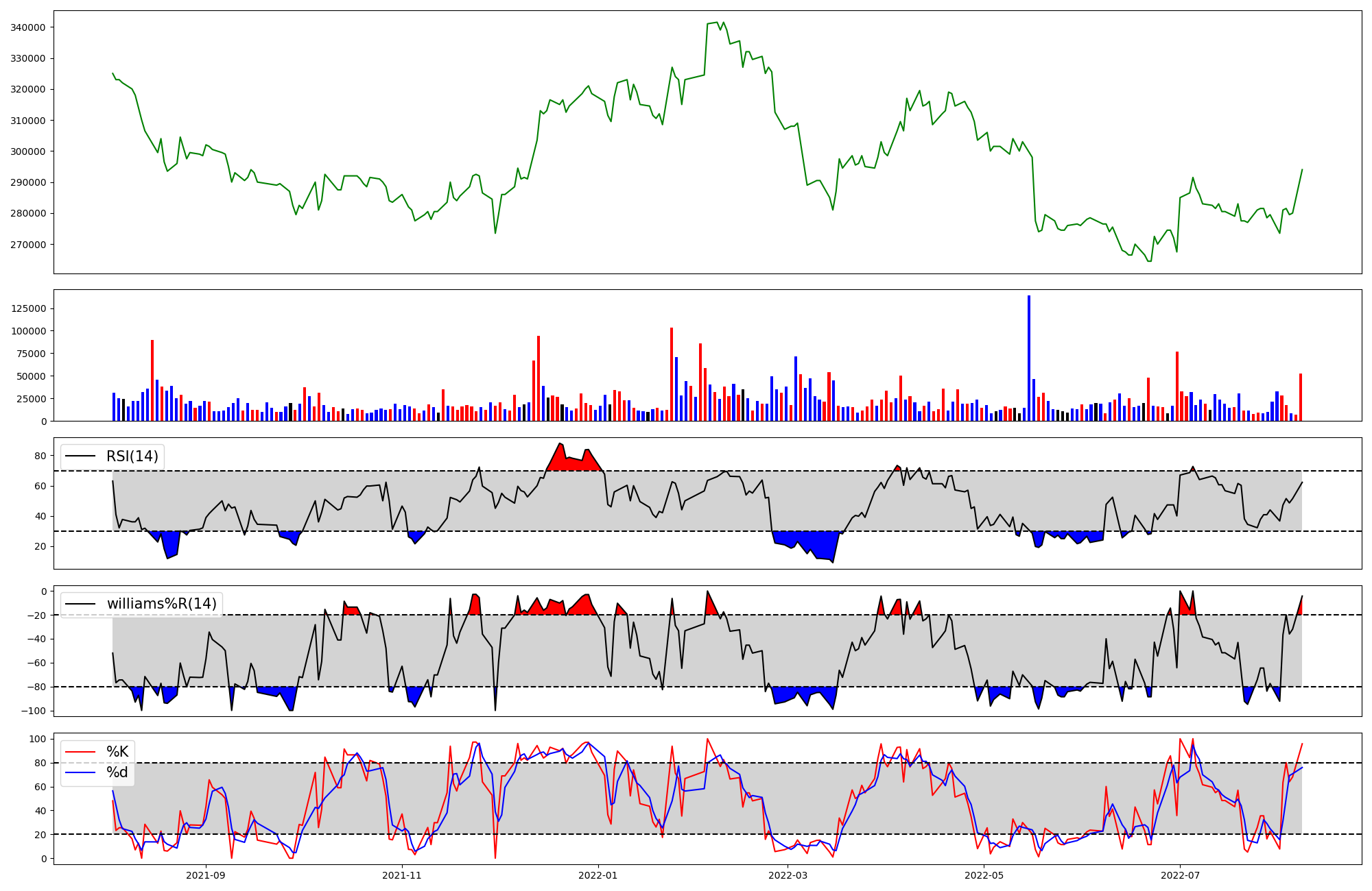 | RSI | Williams %R | stochastic(%K) | |