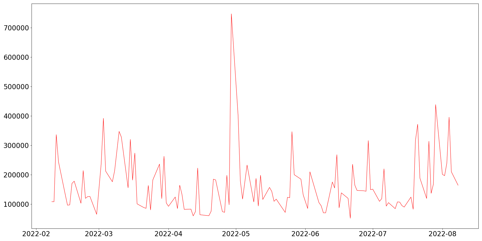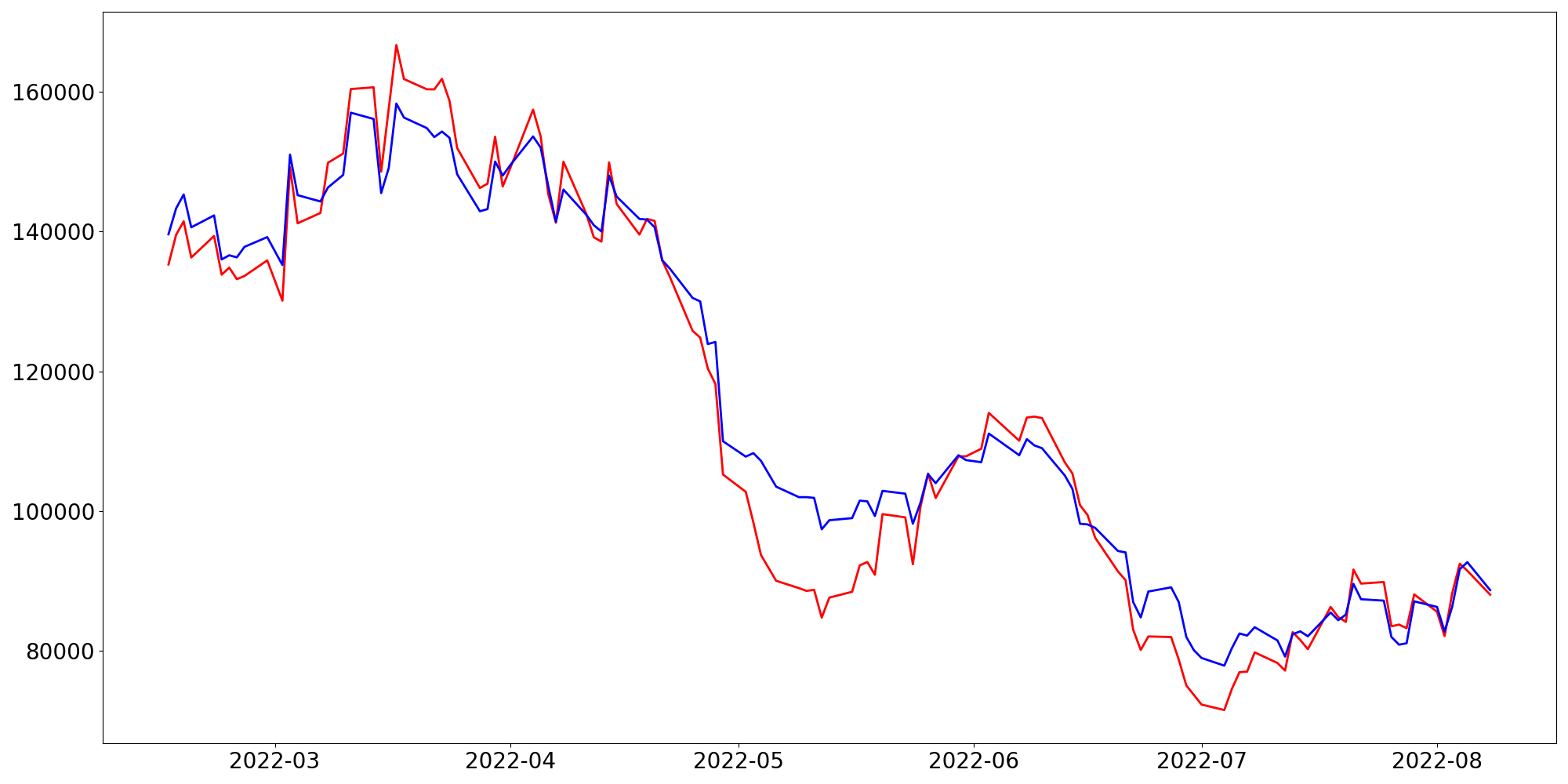[ - : 실제값(종가) / - : 예측값(종가) ]