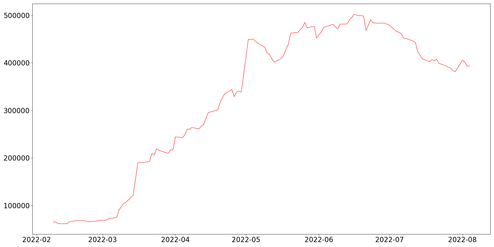 일별 공매도 거래량 추이를 그래프로 나타낸 것으로 공매도 거래량이 증가할 수록 단기적으로 가격 하락을 예측하는 시장참가자가 증거하는 것으로 판단해 볼 수 있습니다.