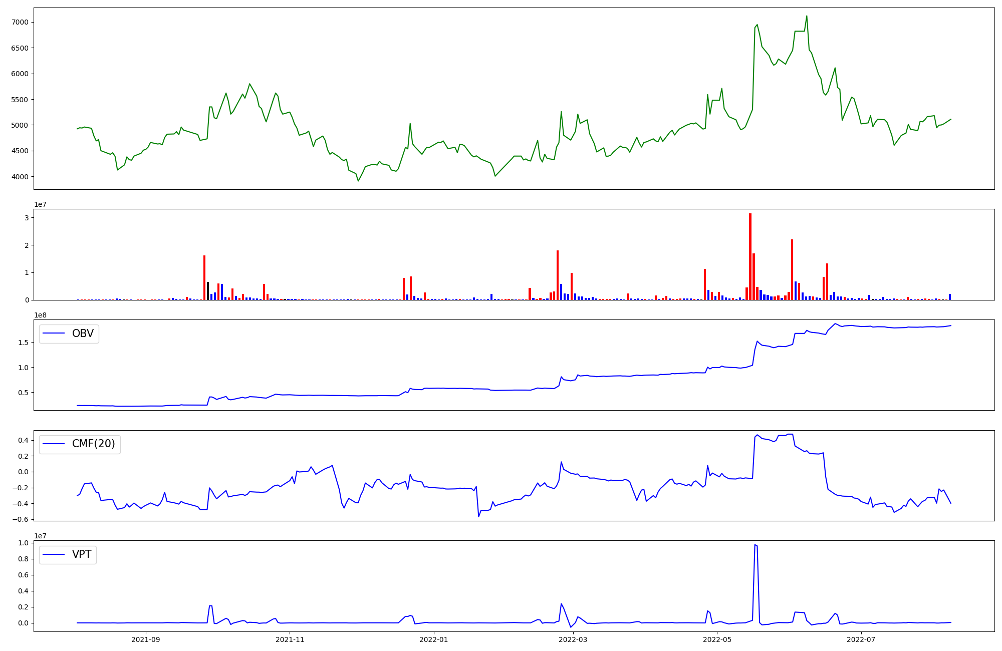 | OBV | CMF | VPT | |