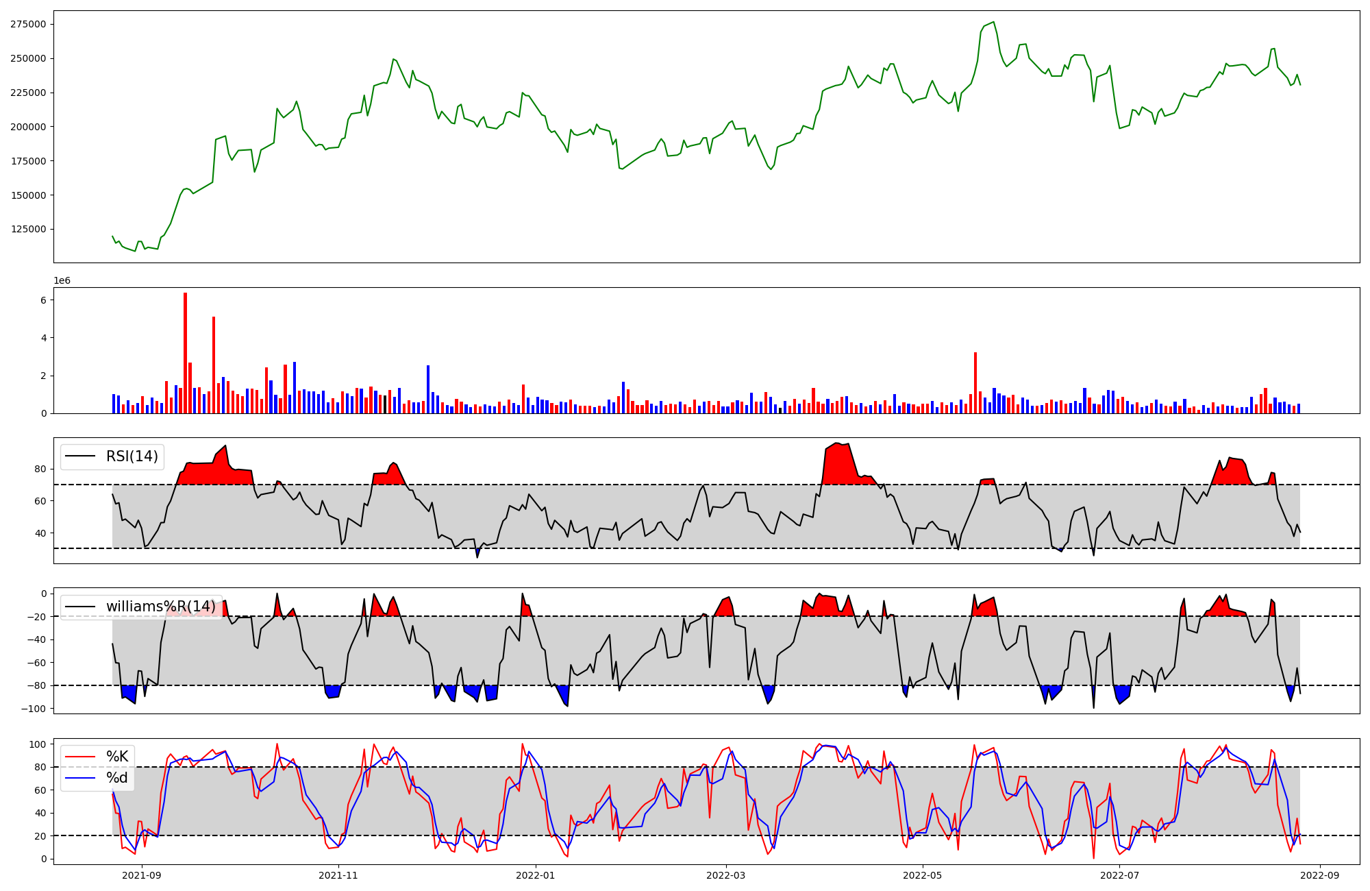 | RSI | Williams %R | stochastic(%K) | |