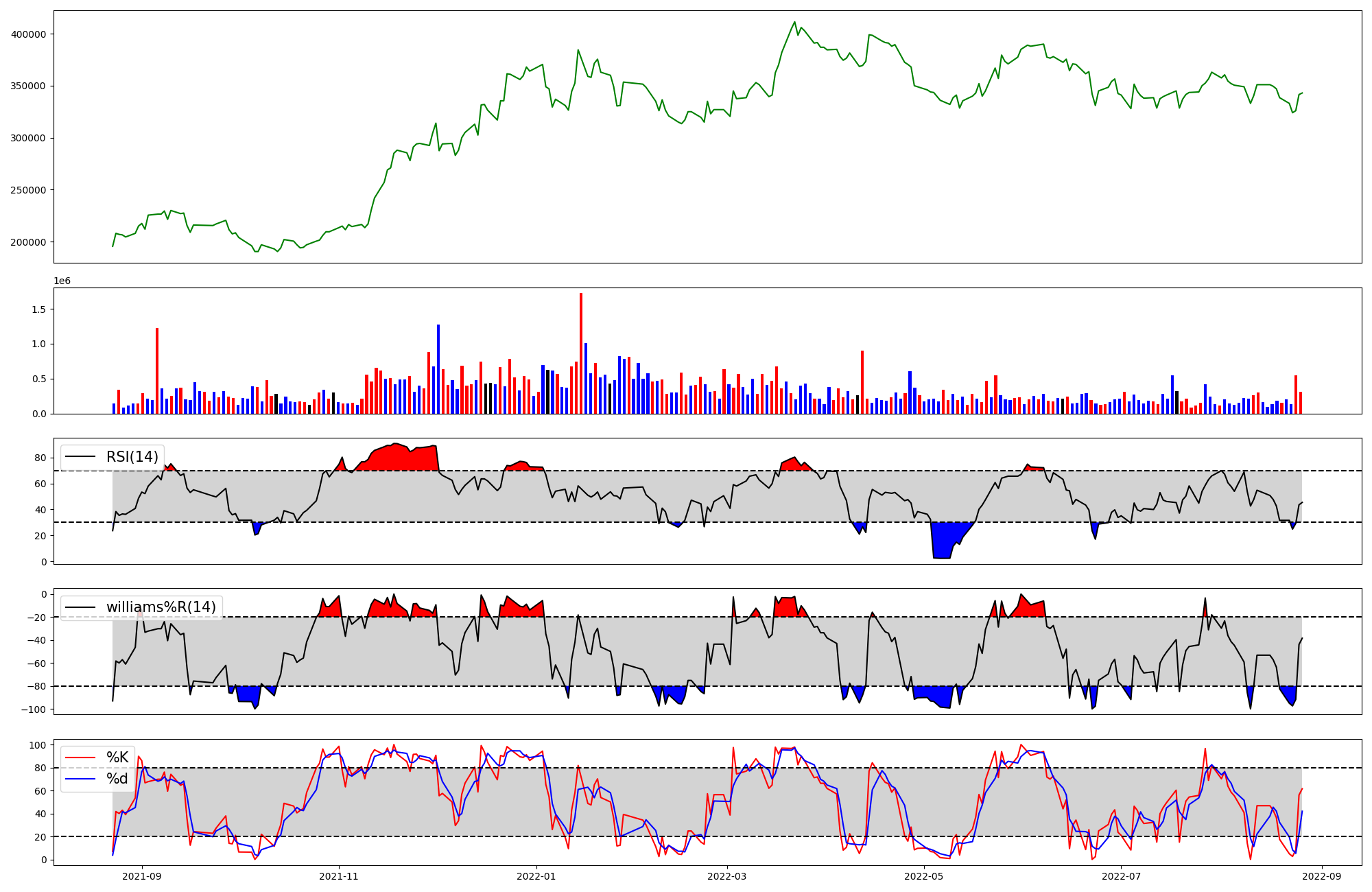 | RSI | Williams %R | stochastic(%K) | |