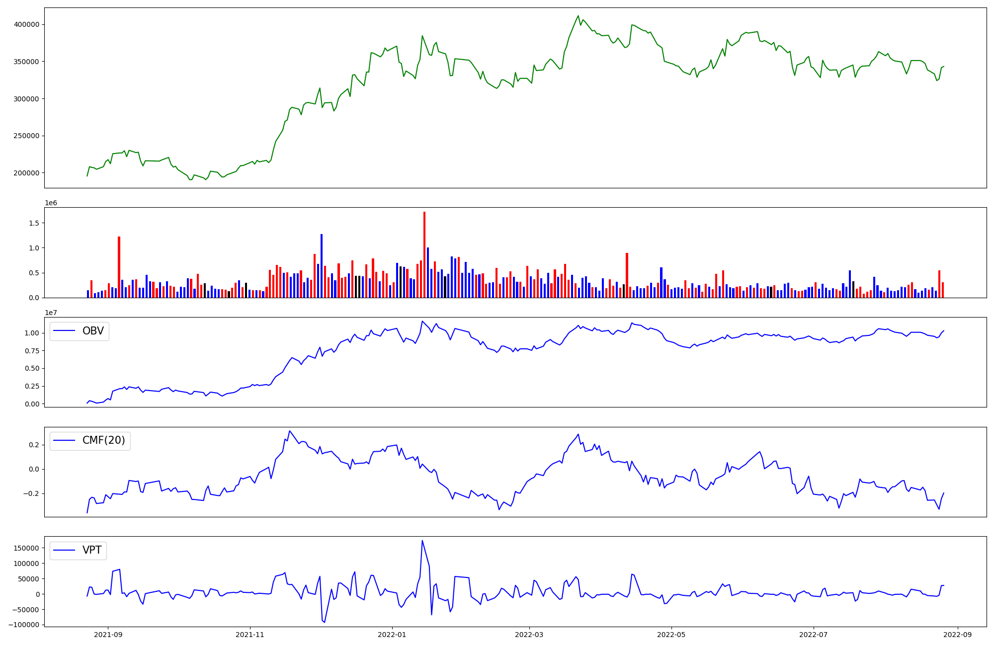 | OBV | CMF | VPT | |