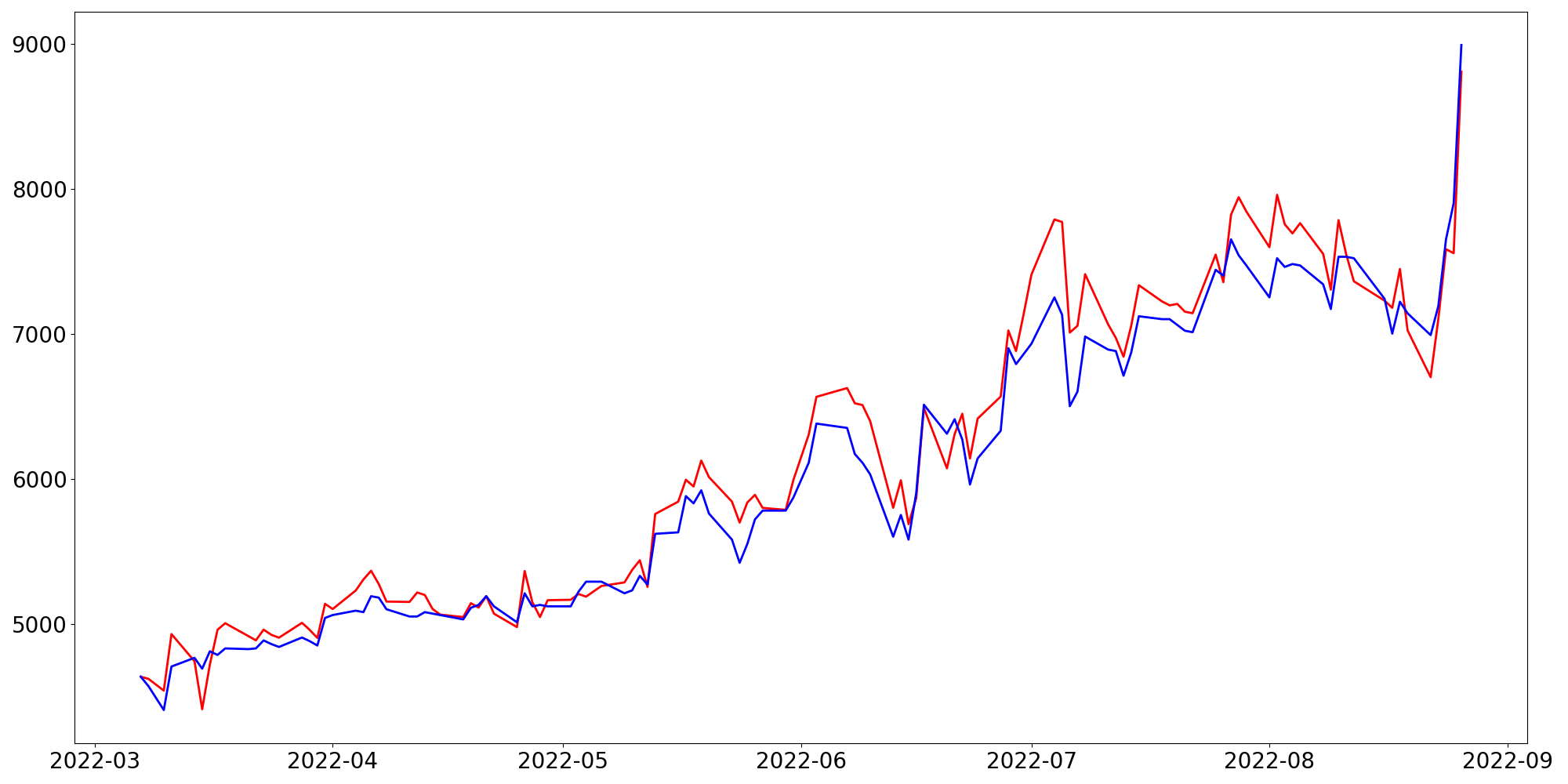[ - : 실제값(종가) / - : 예측값(종가) ]