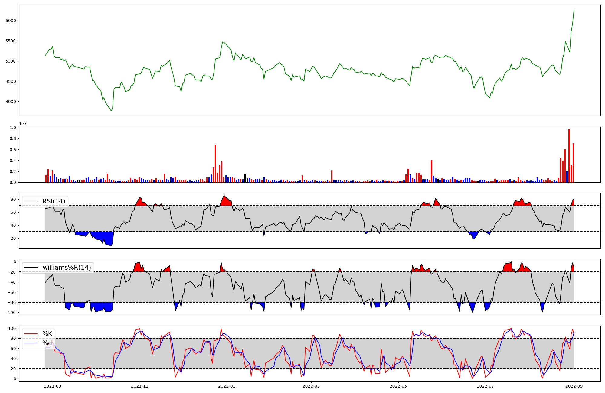 | RSI | Williams %R | stochastic(%K) | |