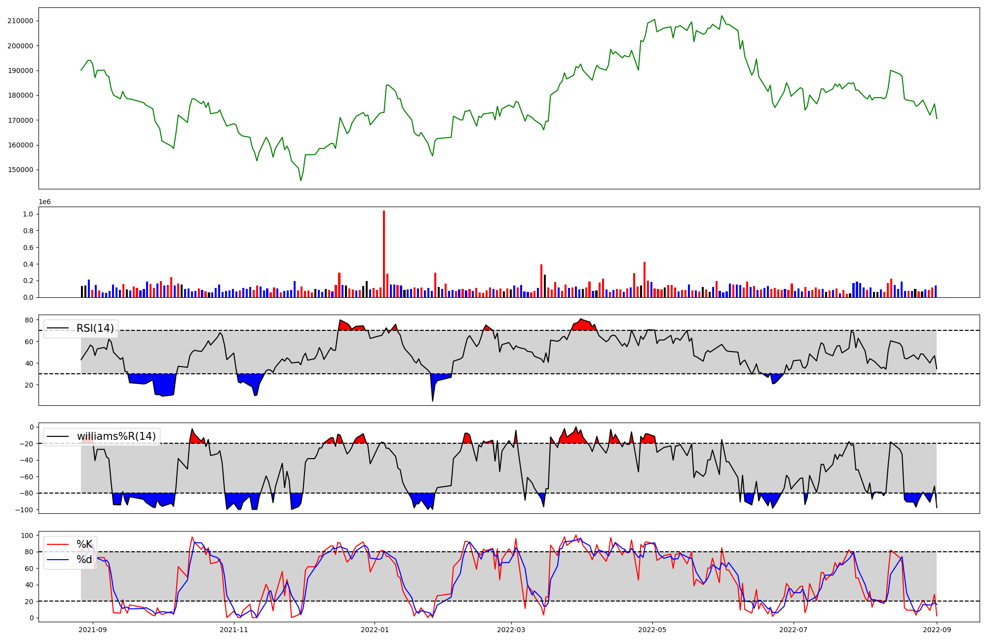 | RSI | Williams %R | stochastic(%K) | |