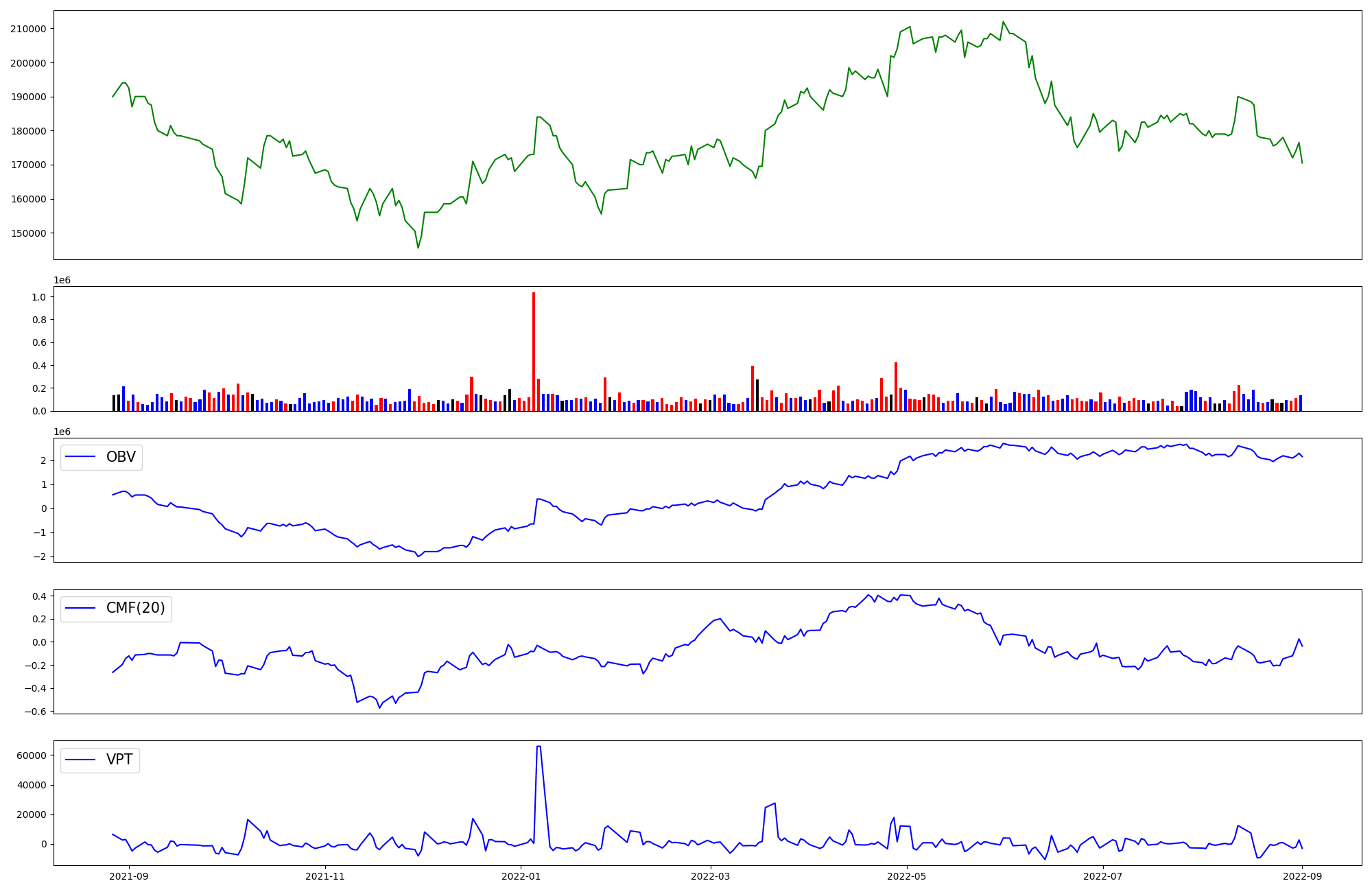 | OBV | CMF | VPT | |