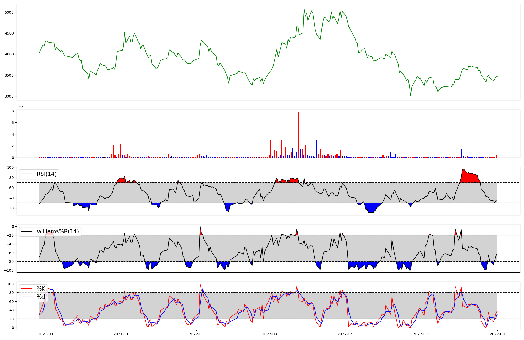 | RSI | Williams %R | stochastic(%K) | |