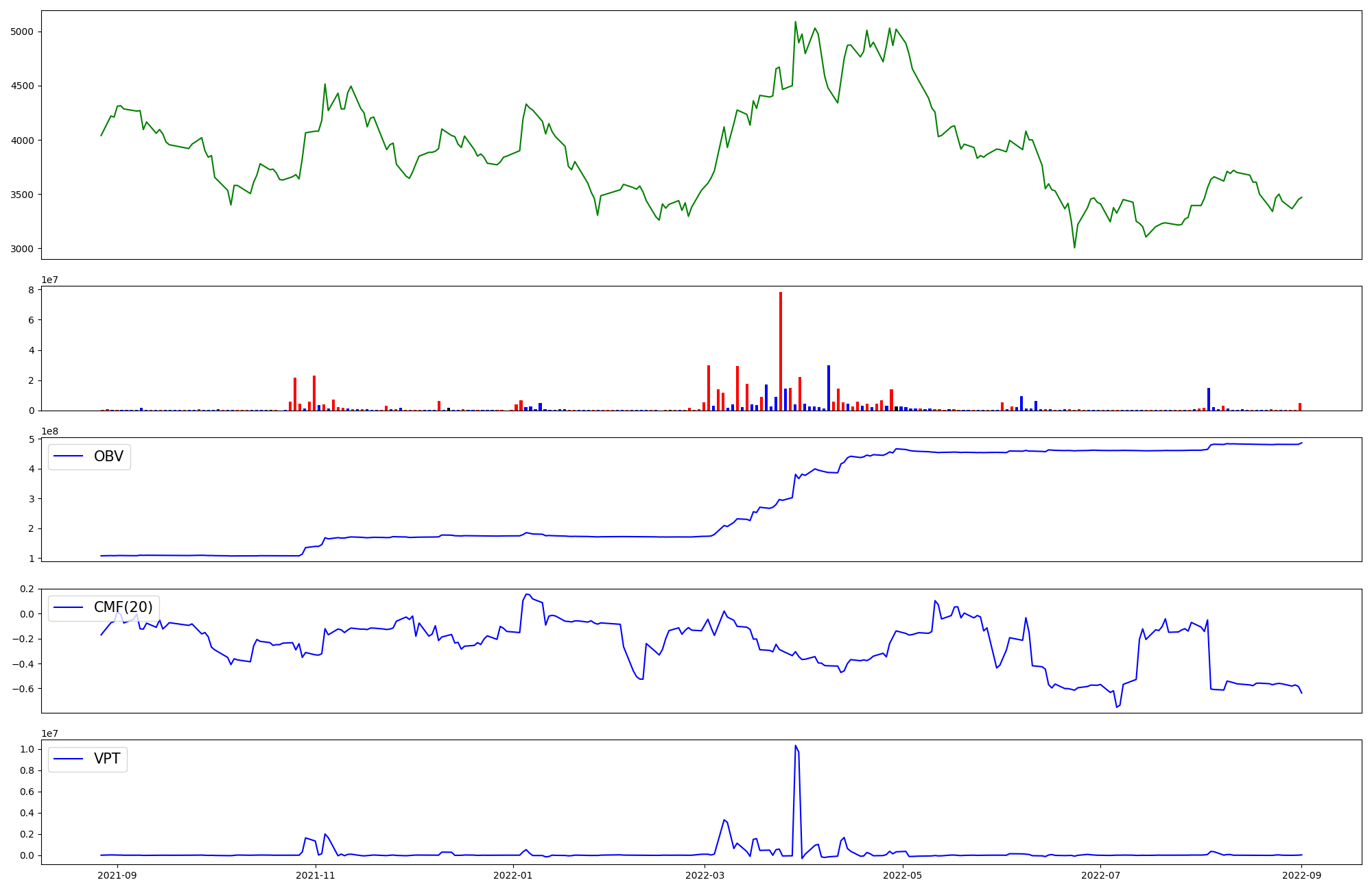 | OBV | CMF | VPT | |