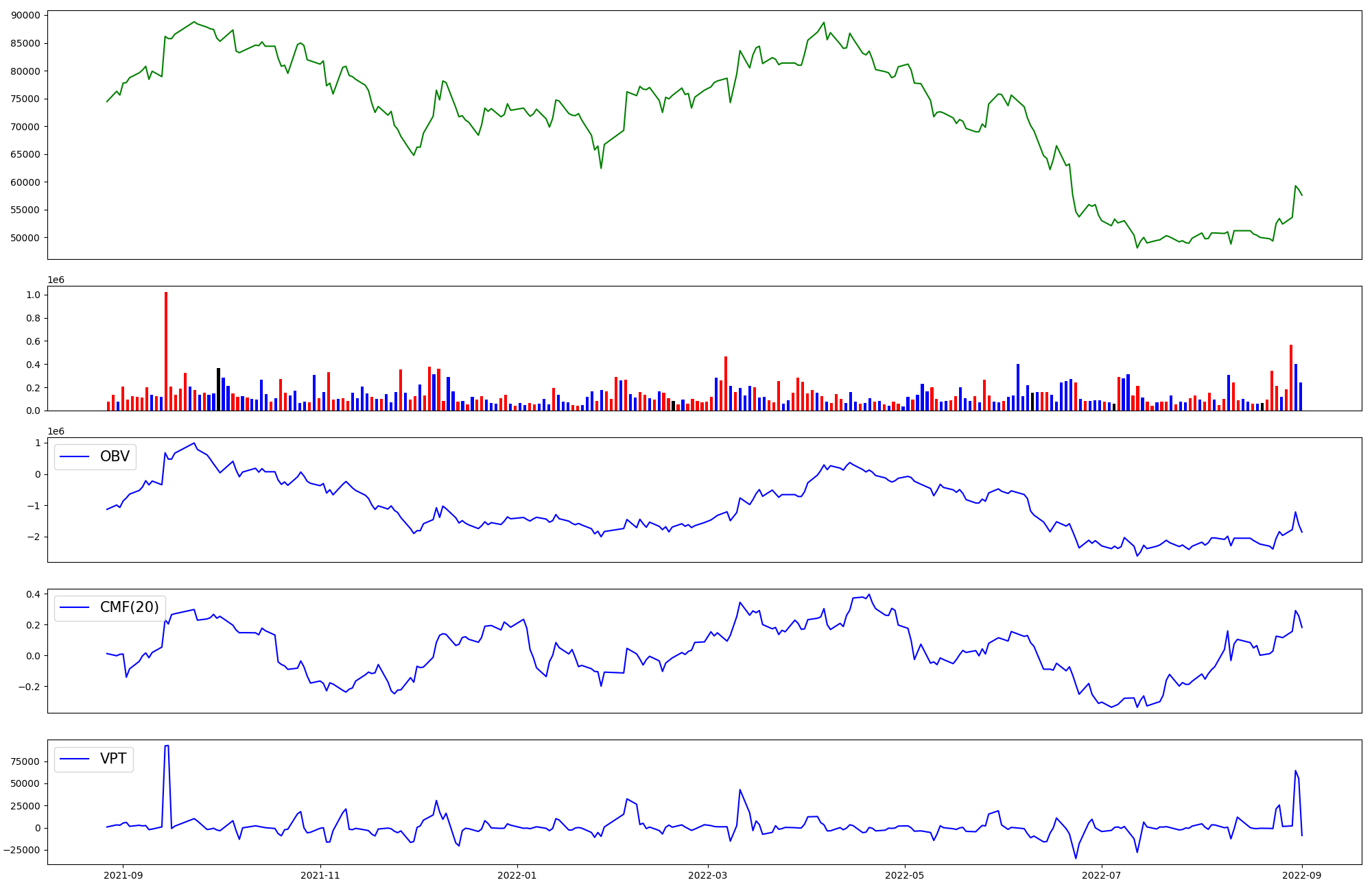 | OBV | CMF | VPT | |