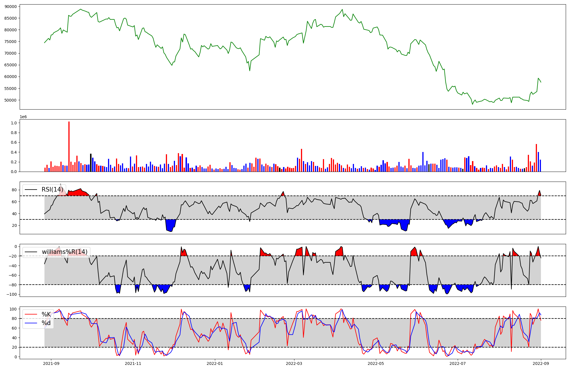 | RSI | Williams %R | stochastic(%K) | |