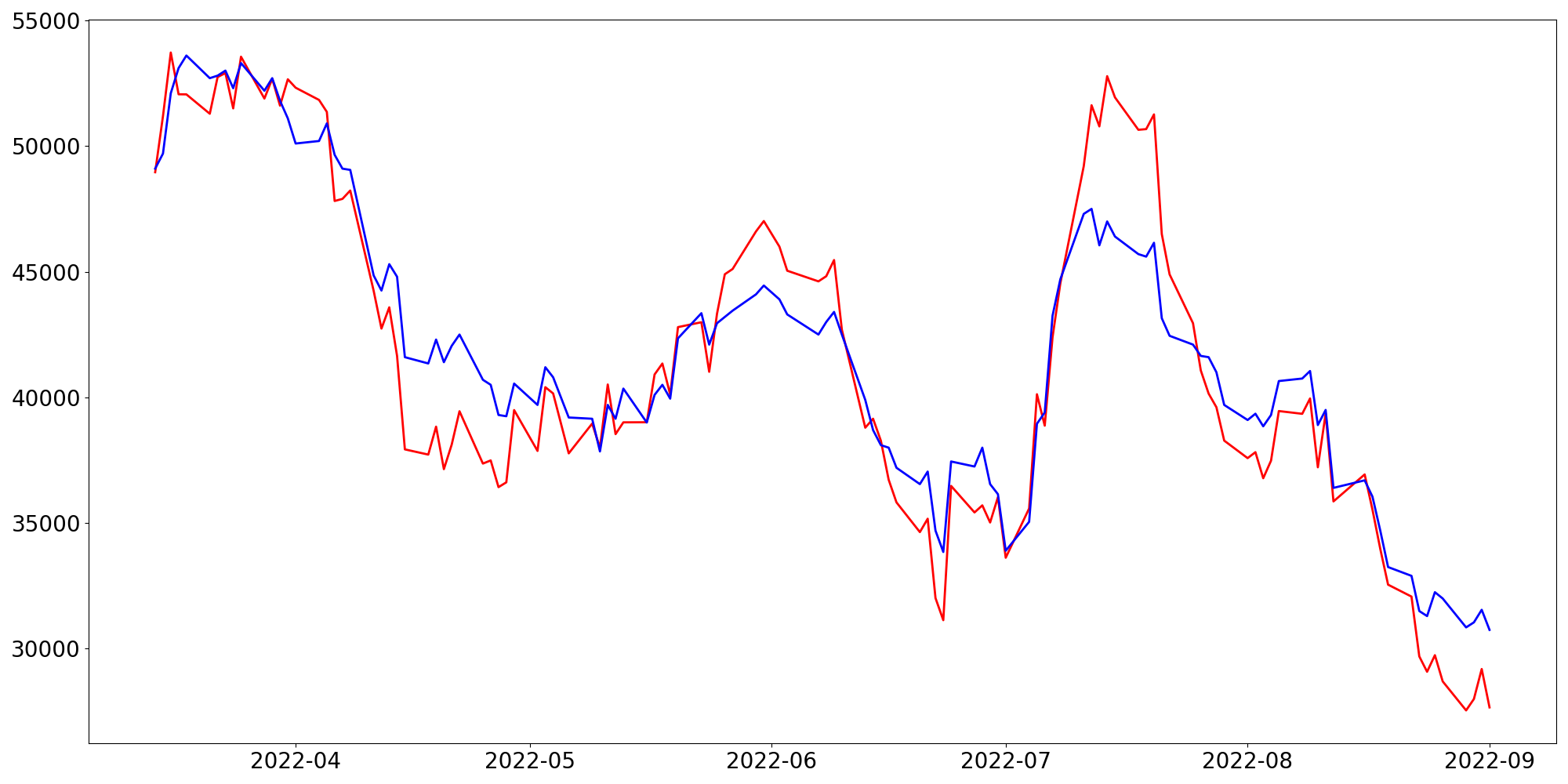 [ - : 실제값(종가) / - : 예측값(종가) ]