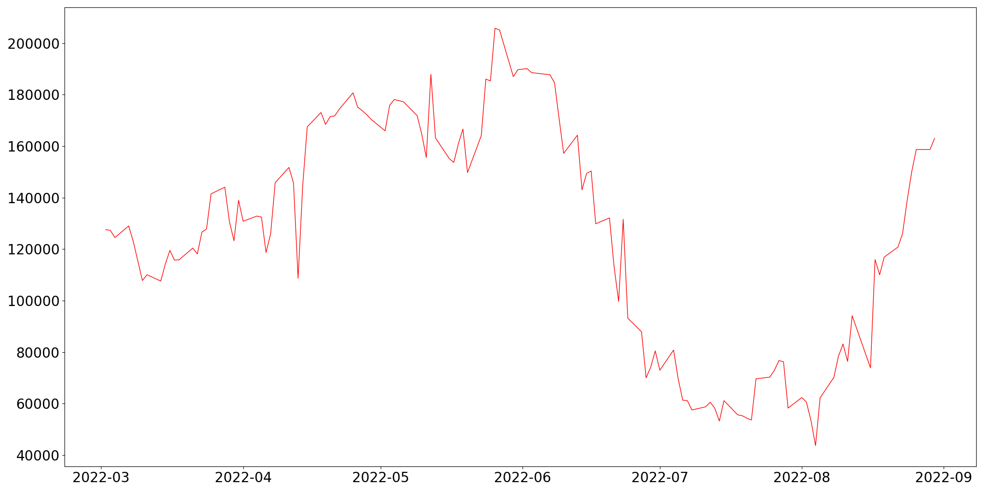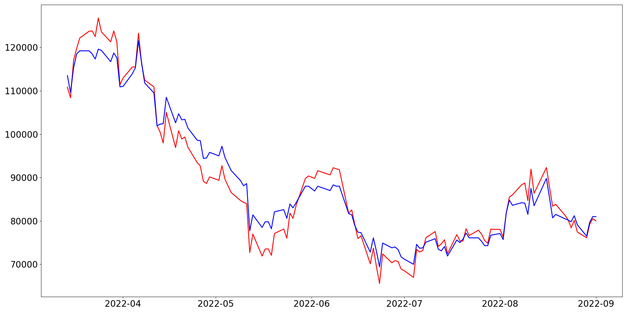 [ - : 실제값(종가) / - : 예측값(종가) ]