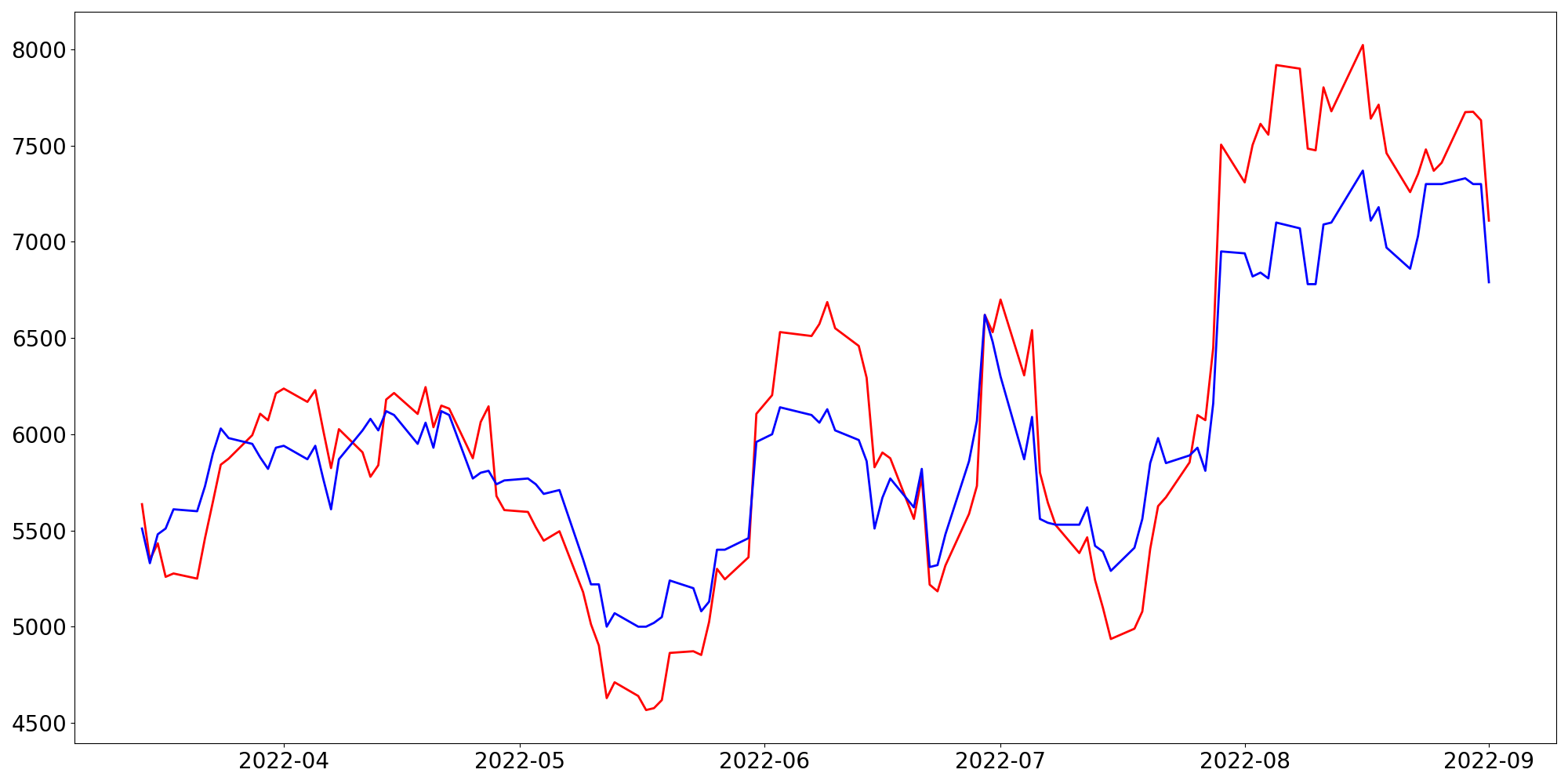 [ - : 실제값(종가) / - : 예측값(종가) ]