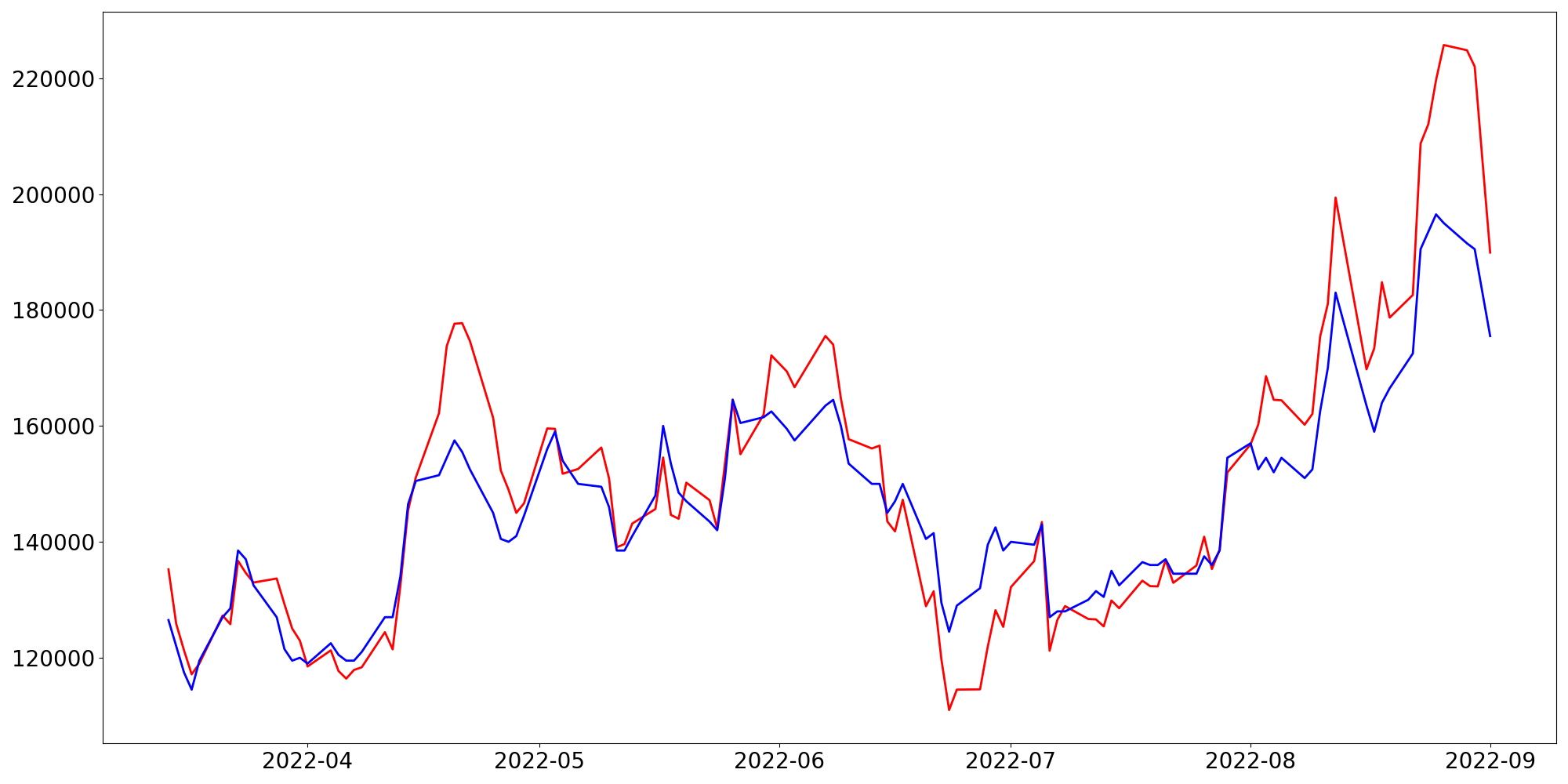 [ - : 실제값(종가) / - : 예측값(종가) ]