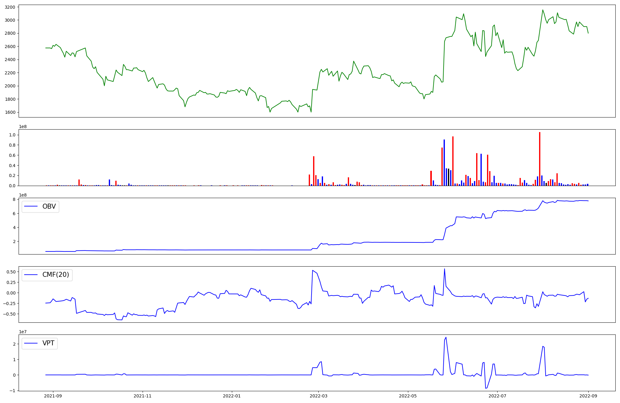 | OBV | CMF | VPT | |
