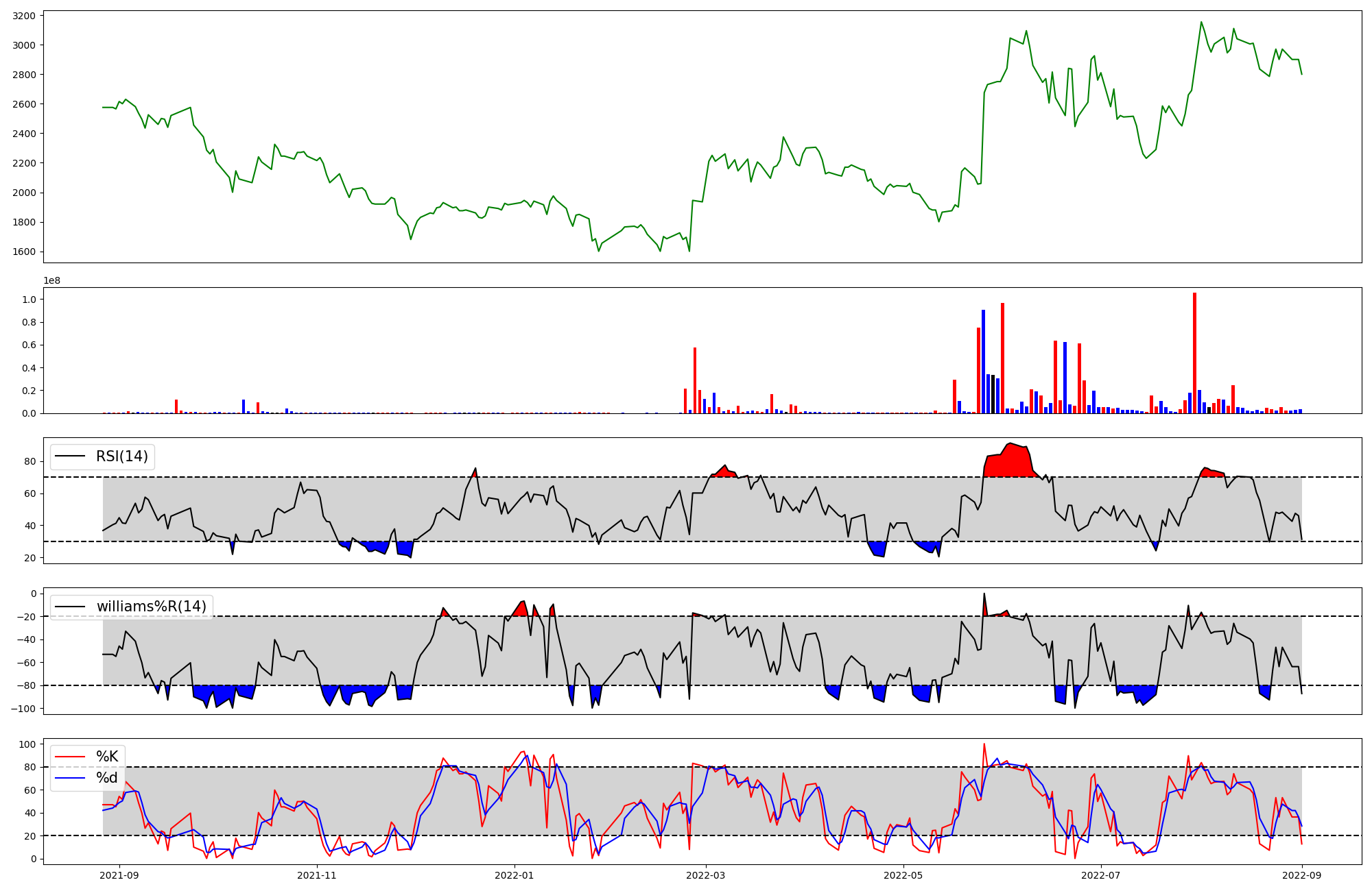 | RSI | Williams %R | stochastic(%K) | |